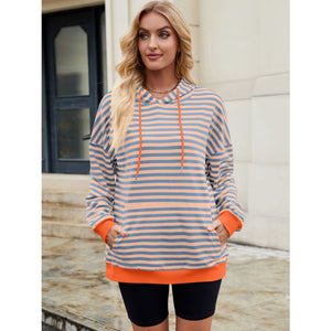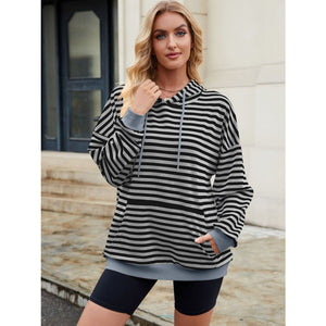 Drawstring Contrast Striped Long Sleeve Hoodie