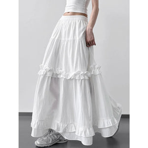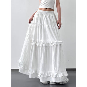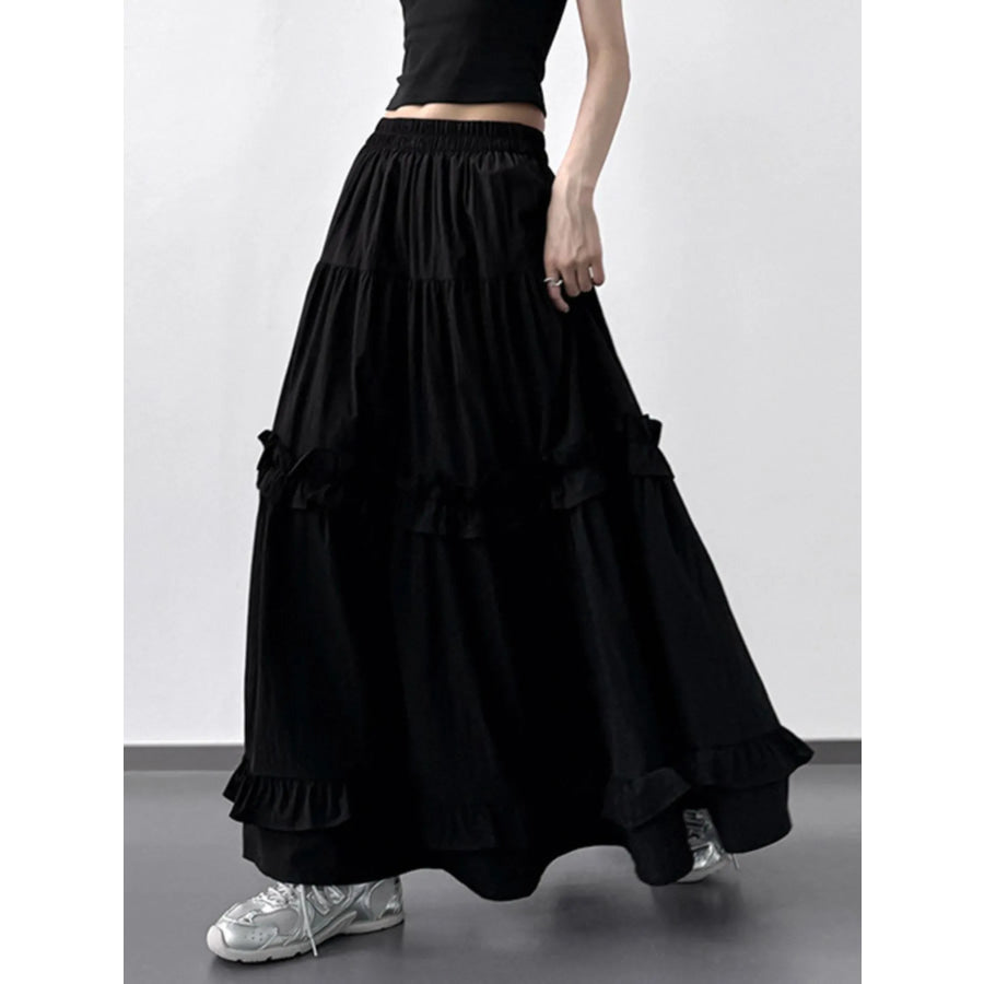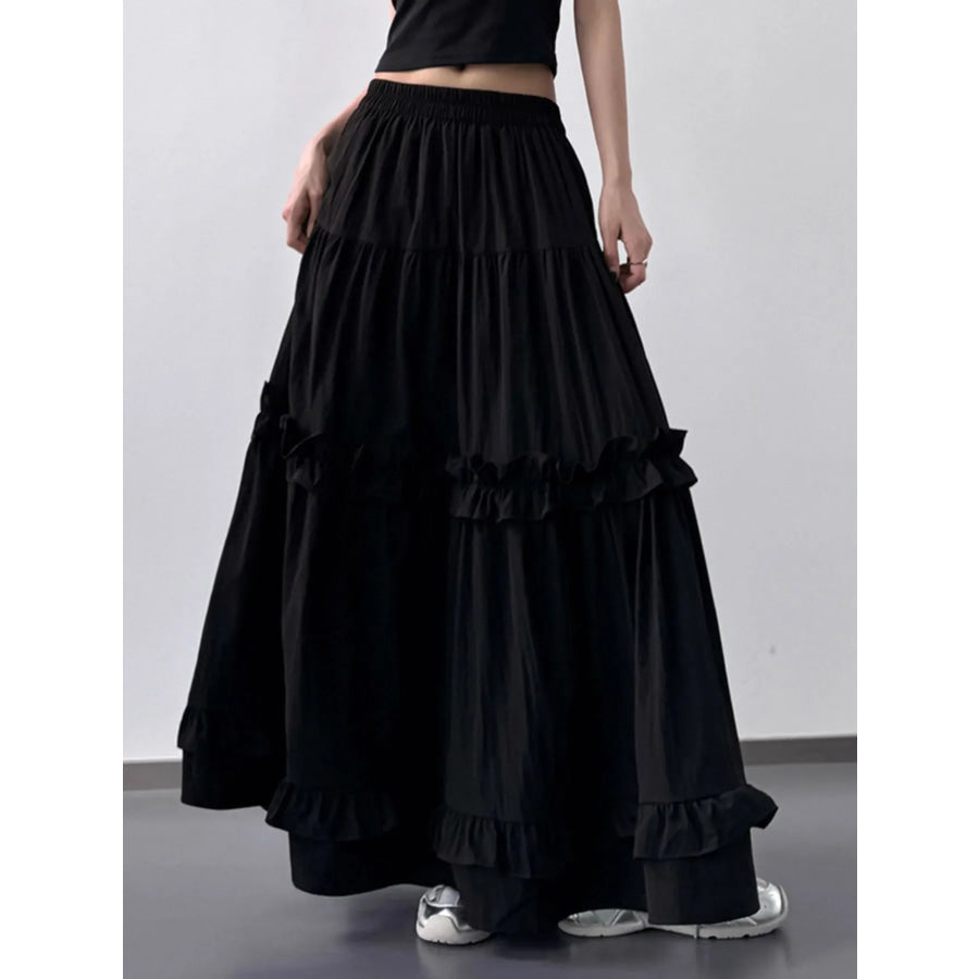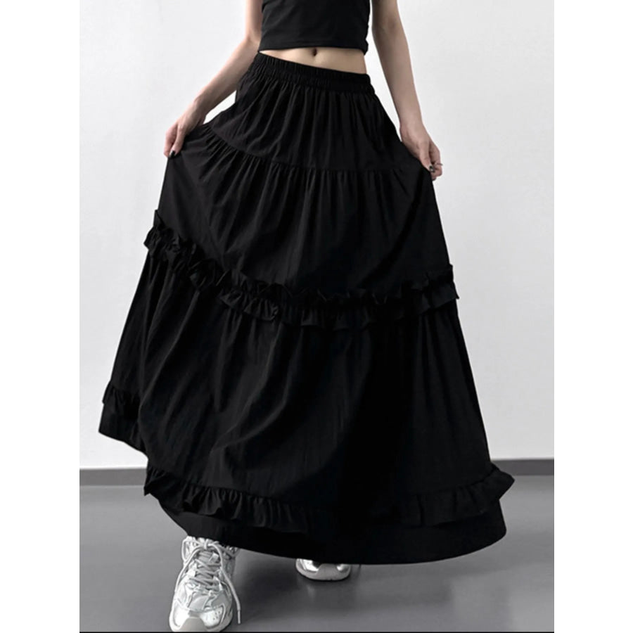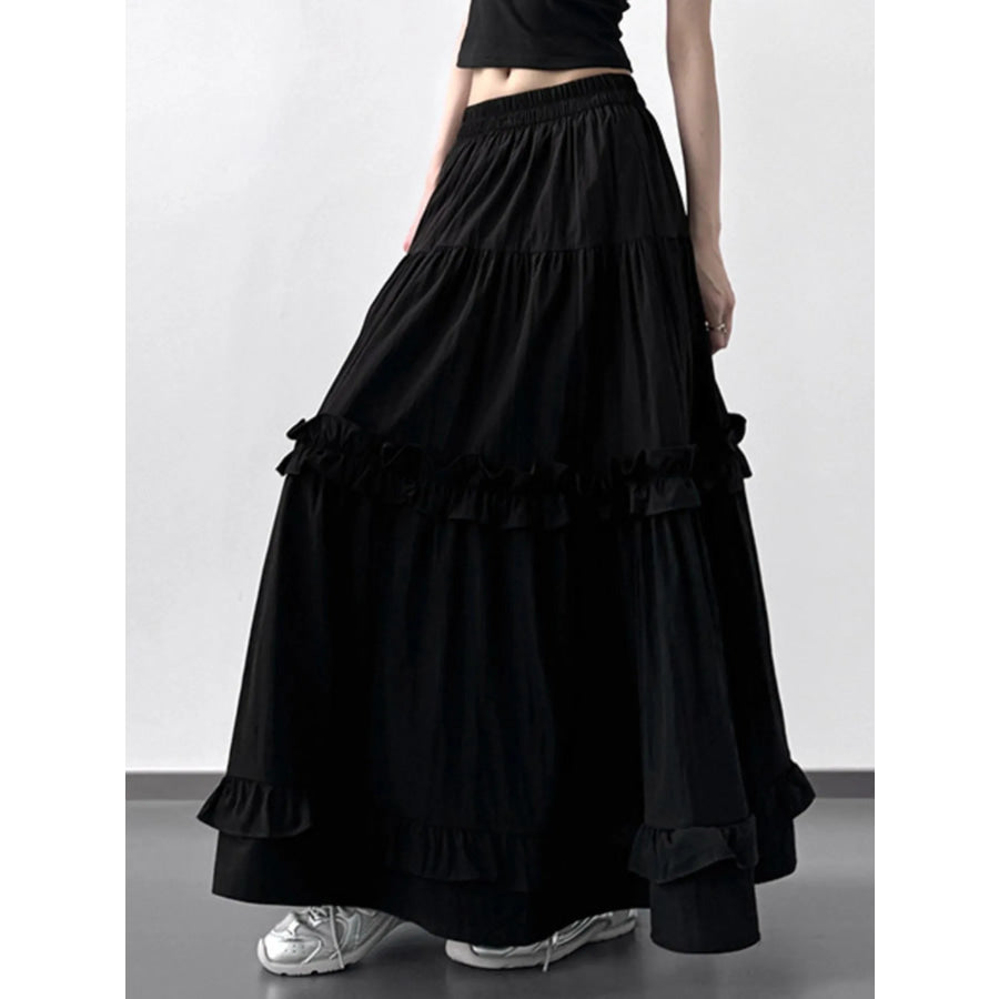 Elastic Waist Ruffle Maxi Skirt