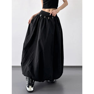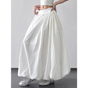 Elastic Waistband Bubble Maxi Skirt