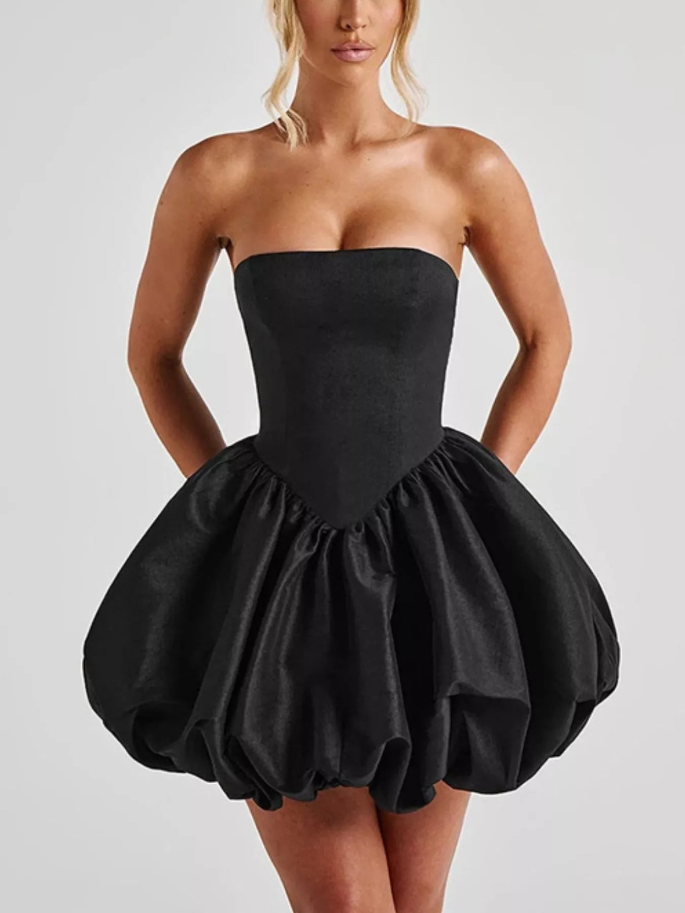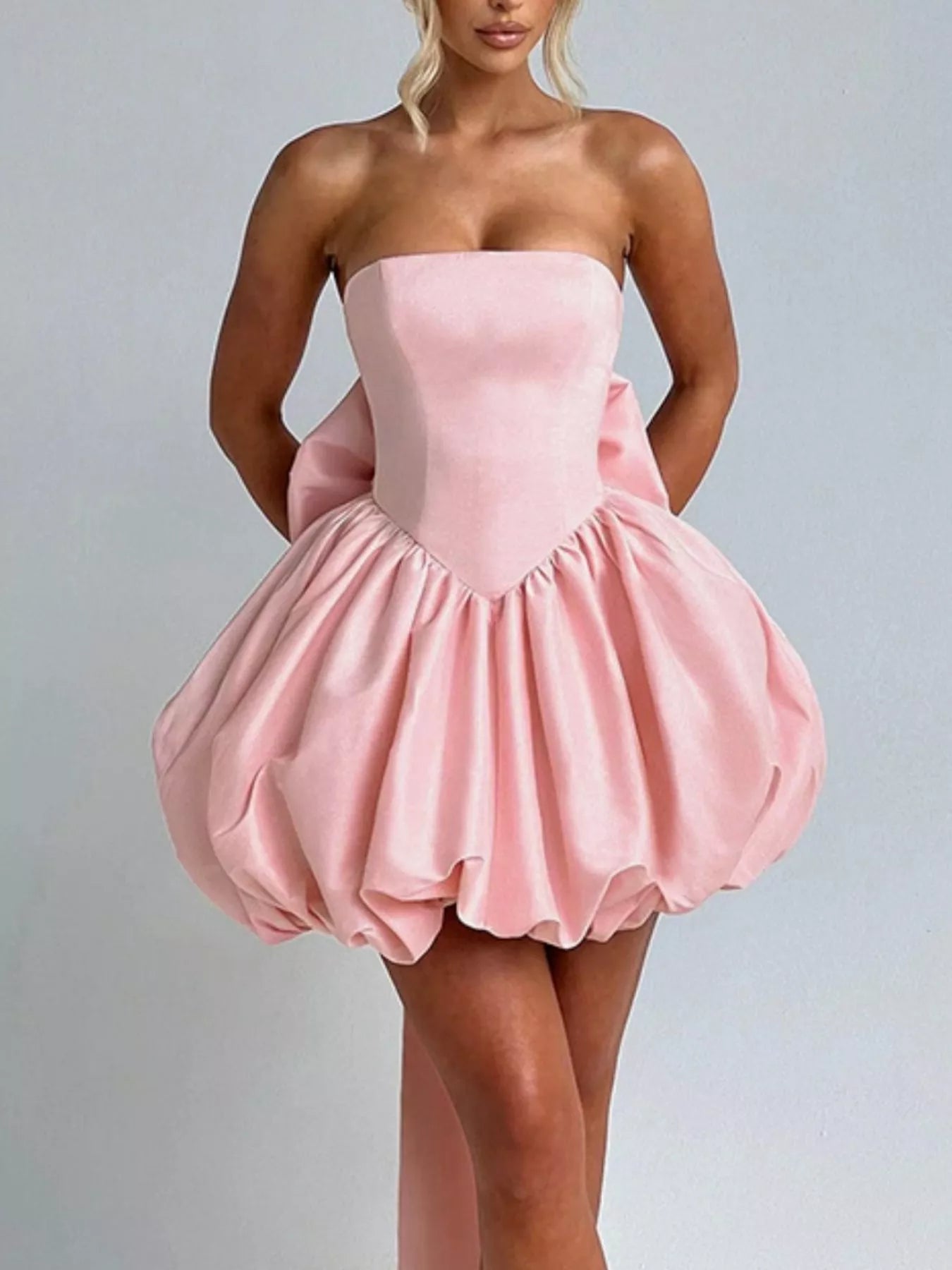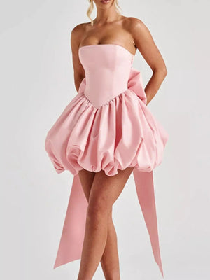 Elegant Strapless Bowknot Bubble Hem Mini Dress