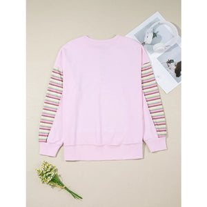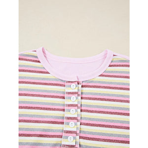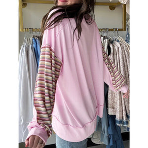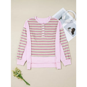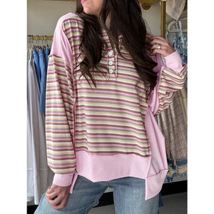 Exposed Seam Color Block Striped Patchwork Loose Henley Sweatshirt