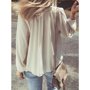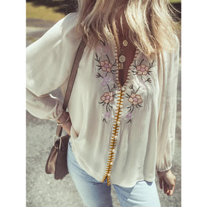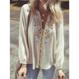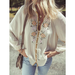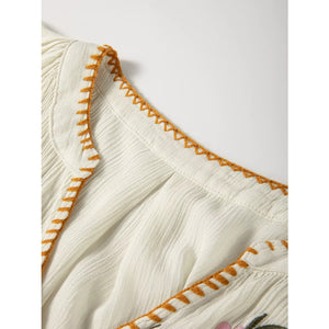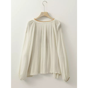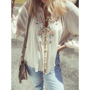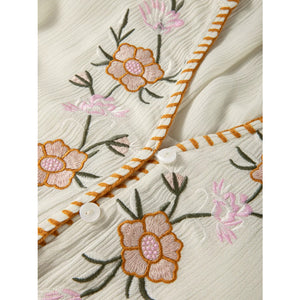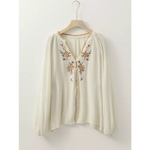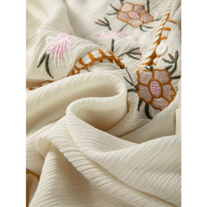 Floral Embroidered Textured Puff Sleeve Loose Shirt