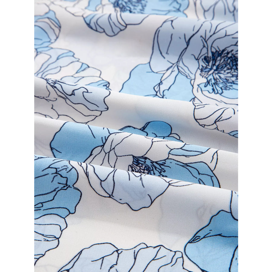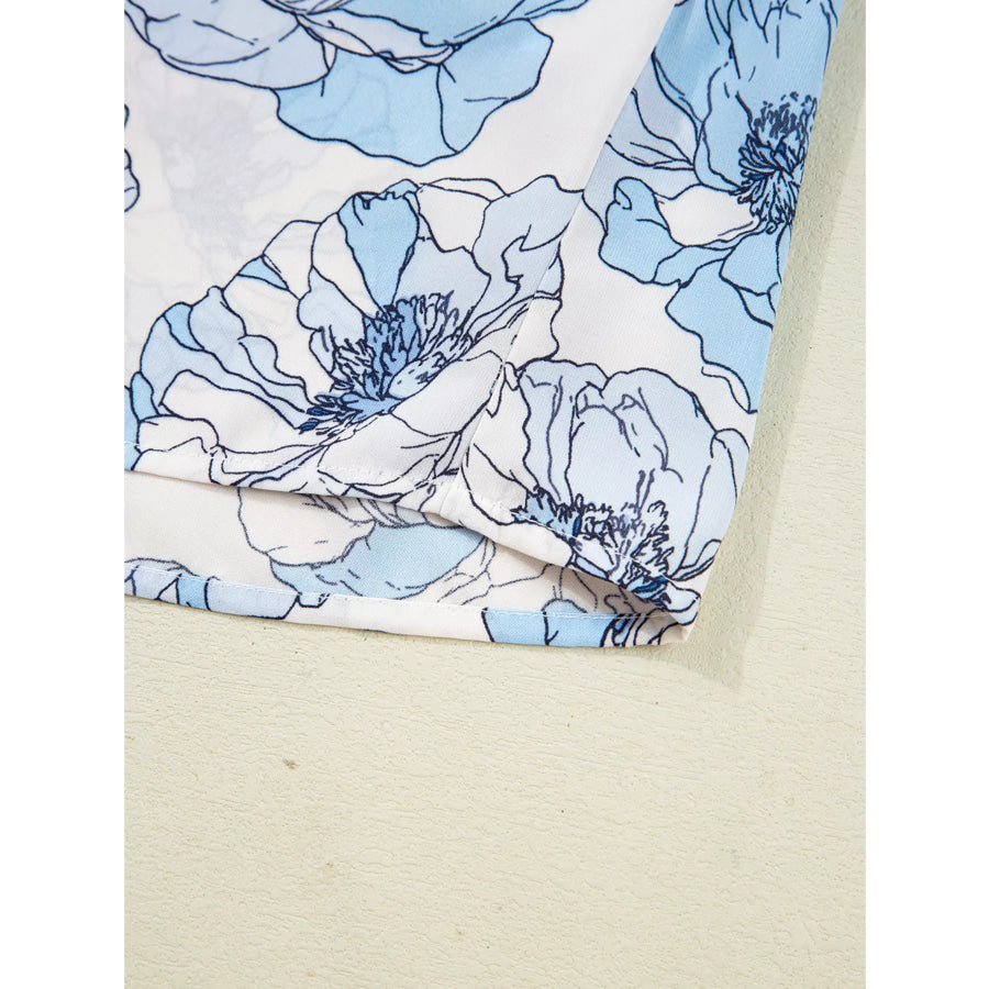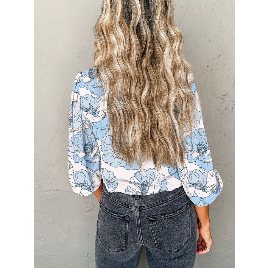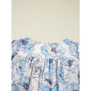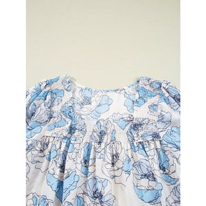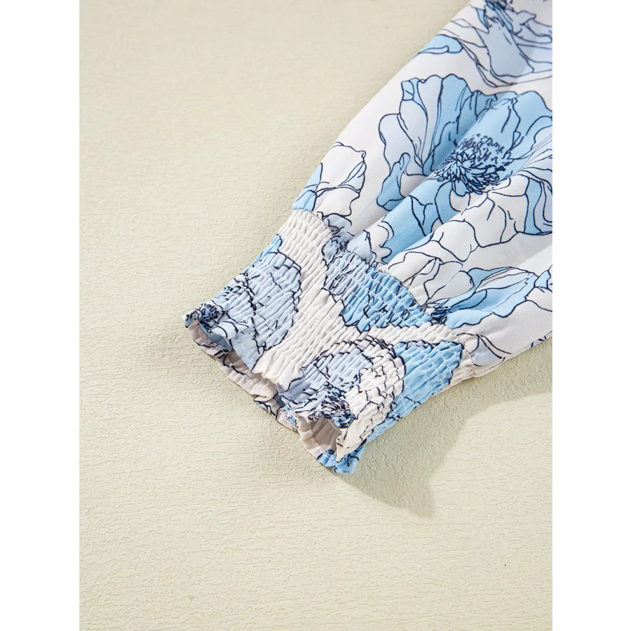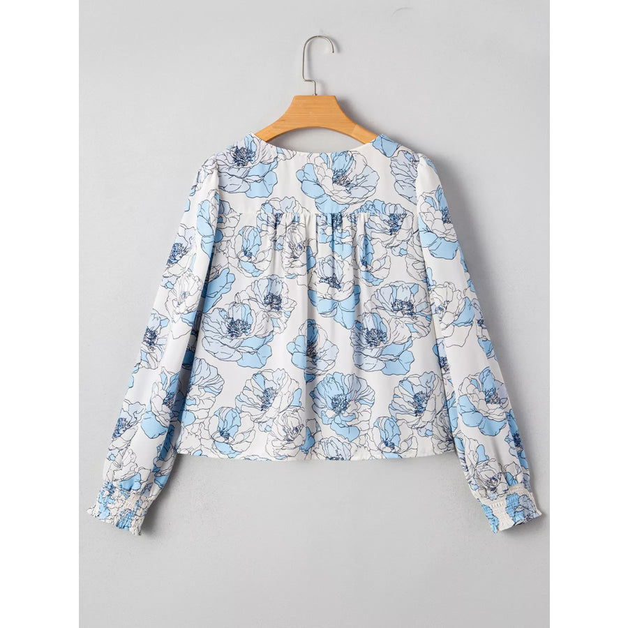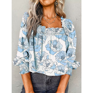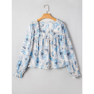 Floral Print Frilly Smocked Square Neck Long Sleeve Blouse