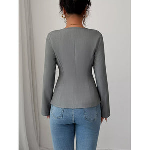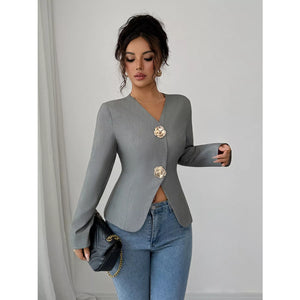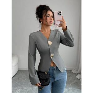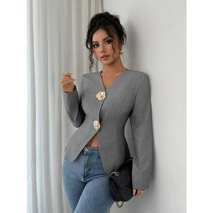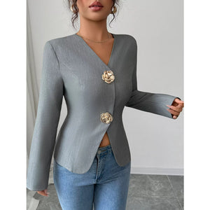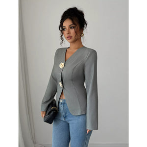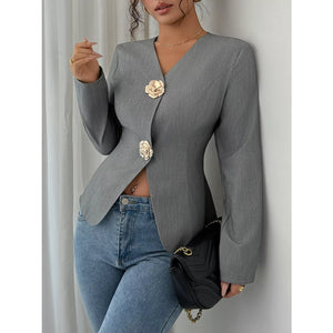 Flower Button Long Sleeve Blazer