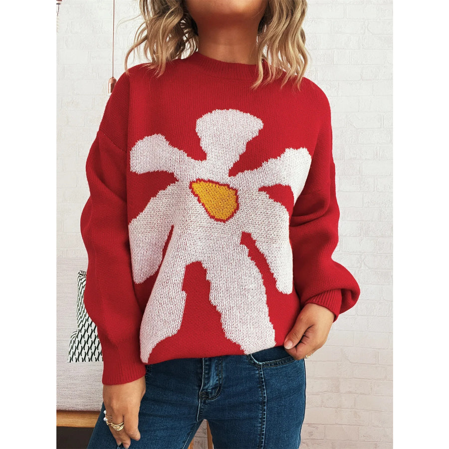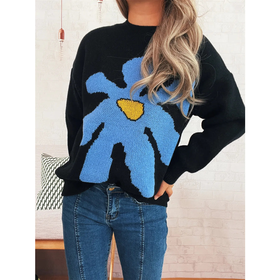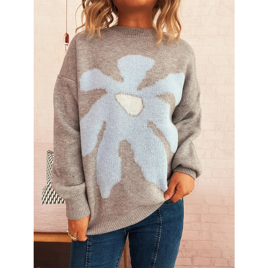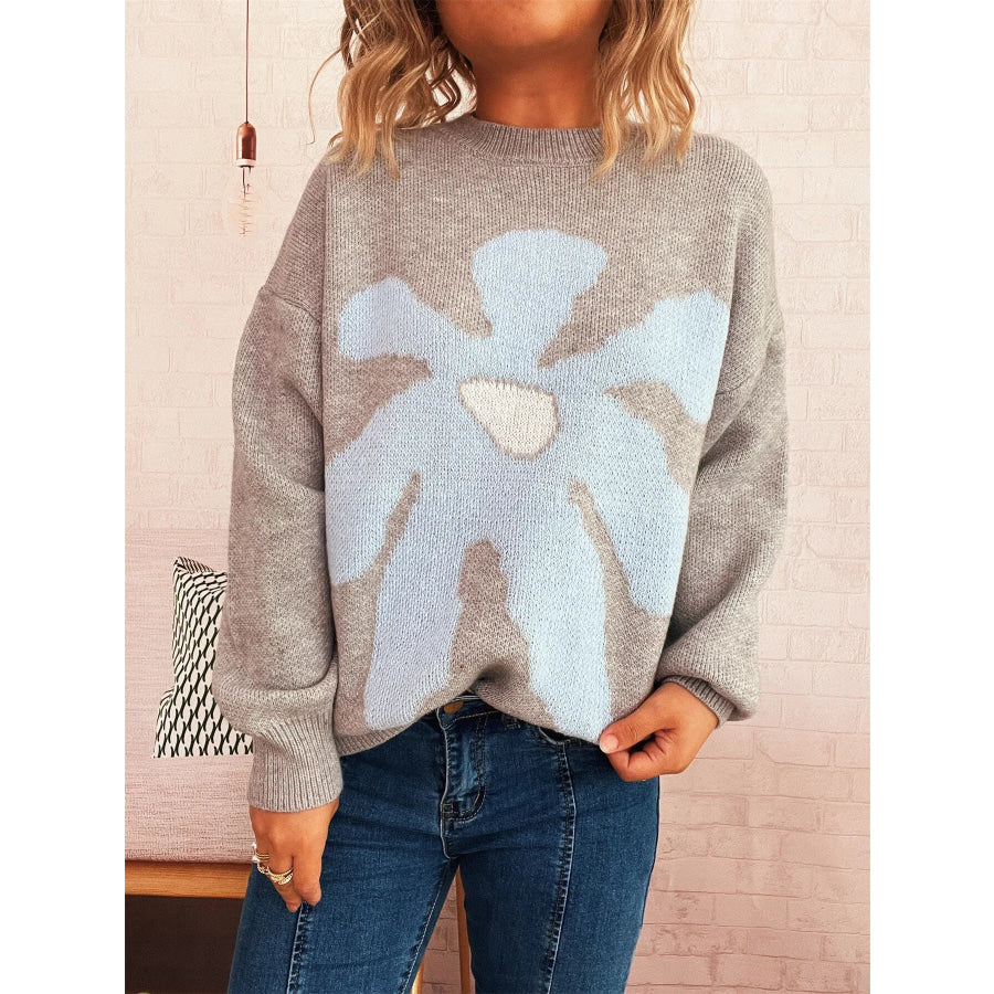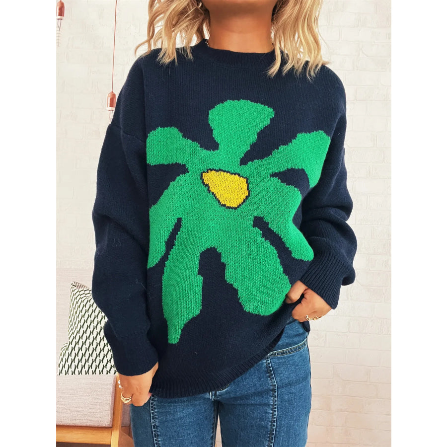 Flower Dropped Shoulder Sweater