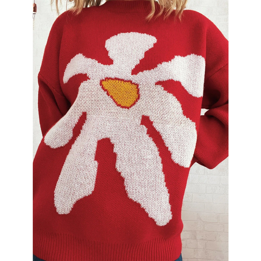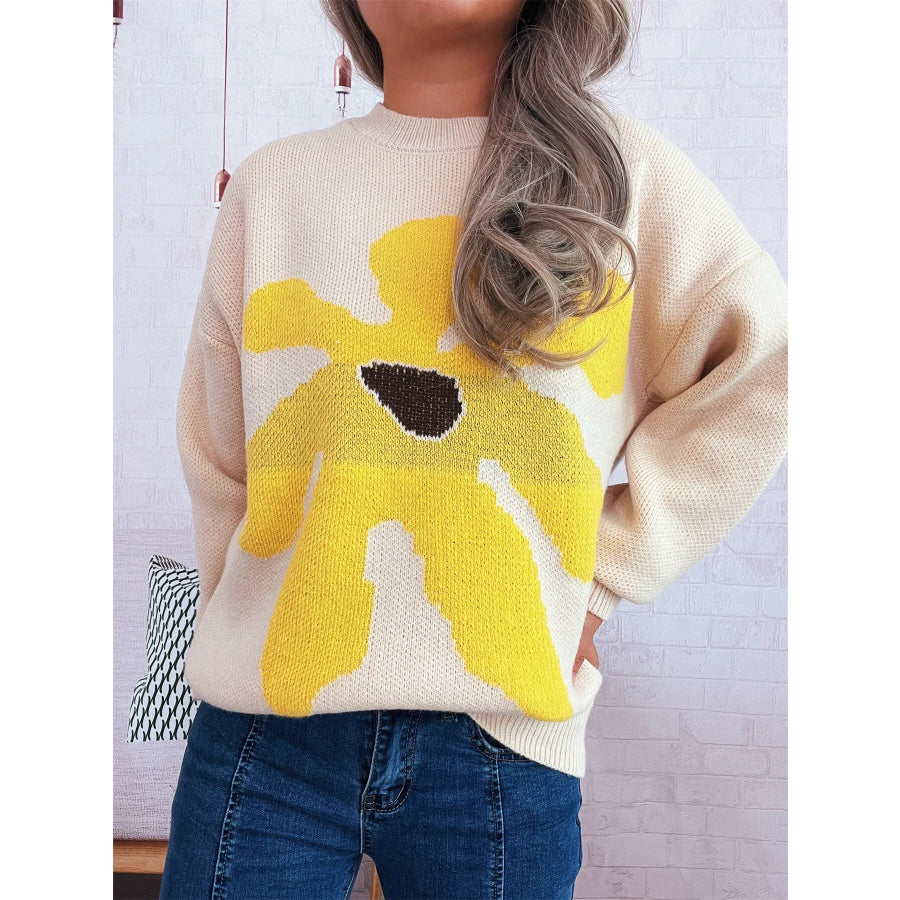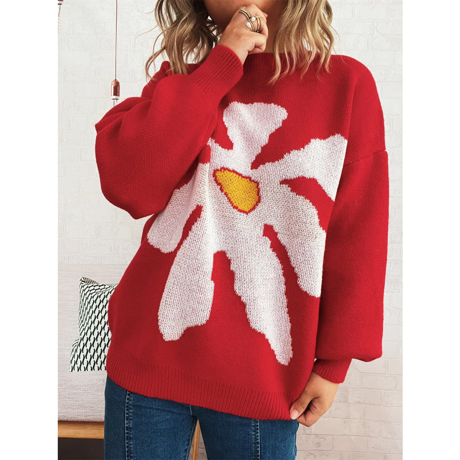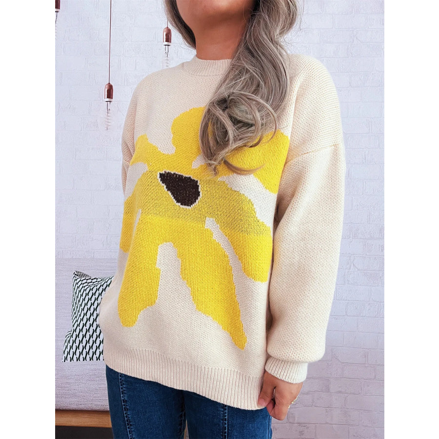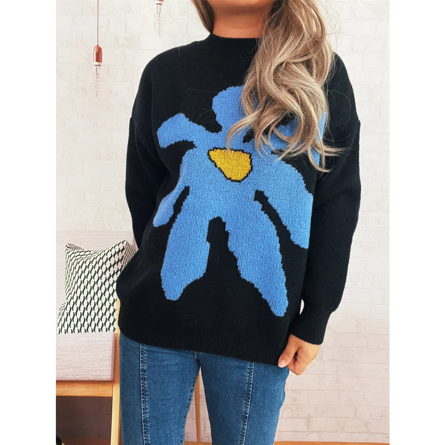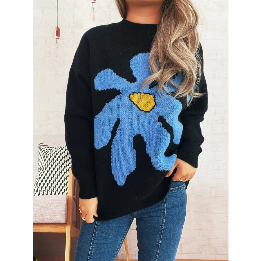 Flower Dropped Shoulder Sweater