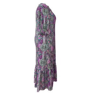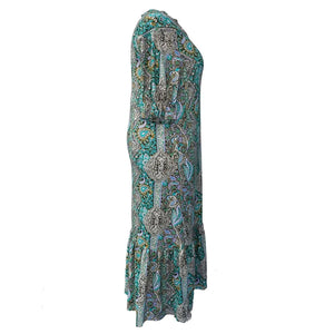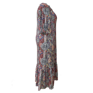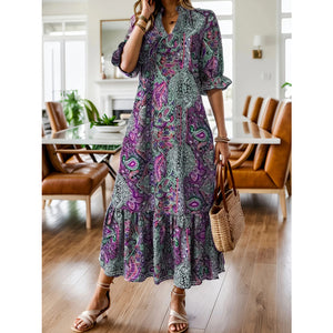 Full Size Bohemian Paisley Print Ruffle Hem Midi Dress Plus Size