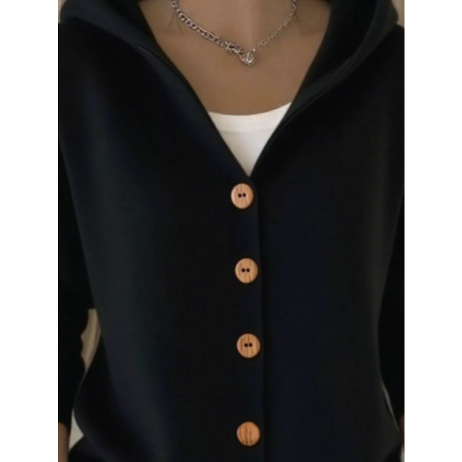 Full Size Button Up Long Sleeve Cardigan Plus Size