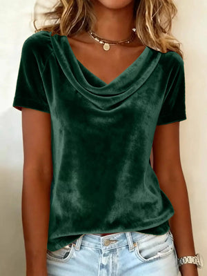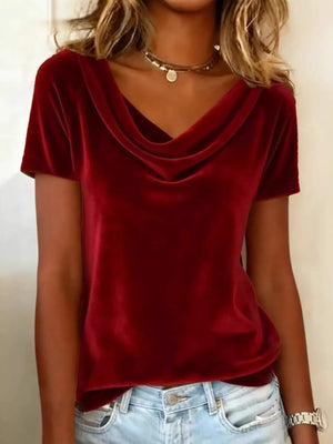 Full Size Cowl Neck Short Sleeve Top Plus Size