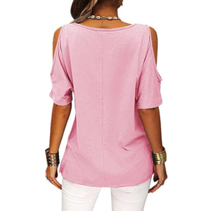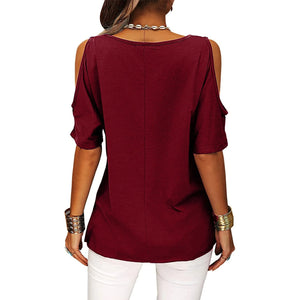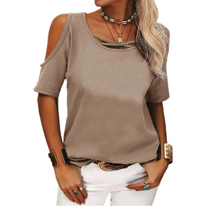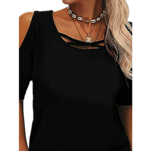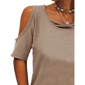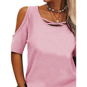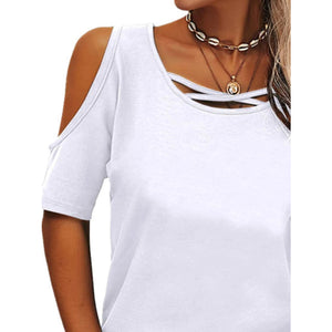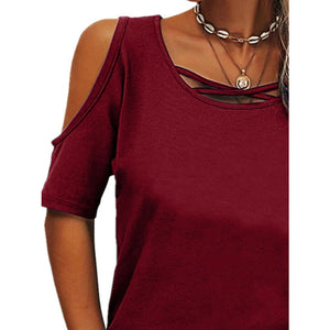 Full Size Crisscross Cold Shoulder Casual T-Shirt Plus Size