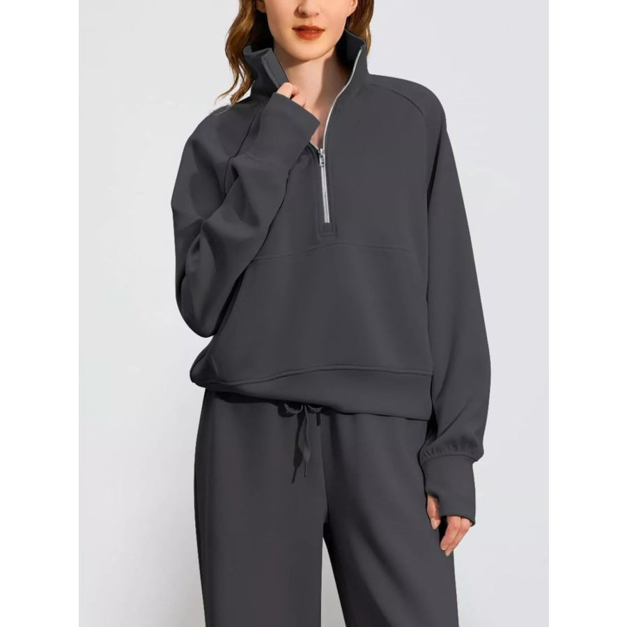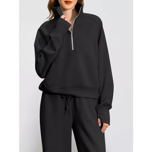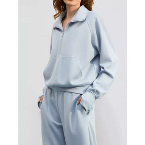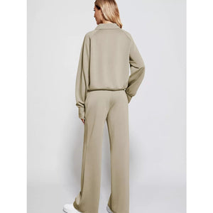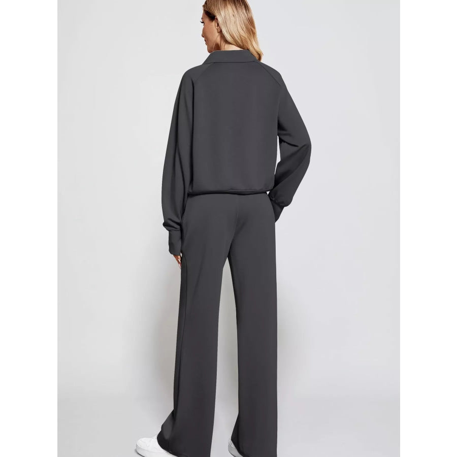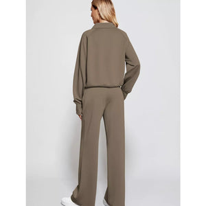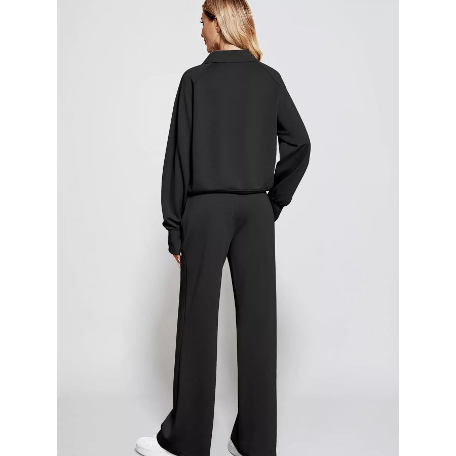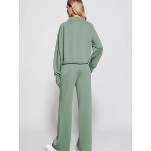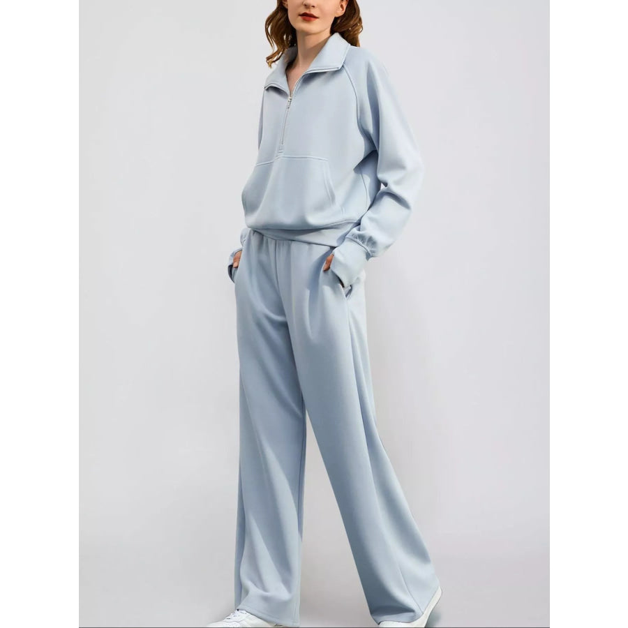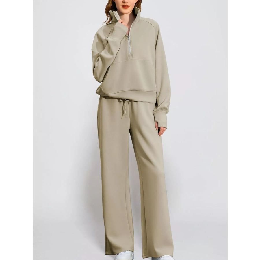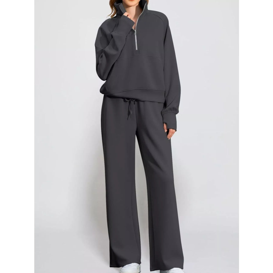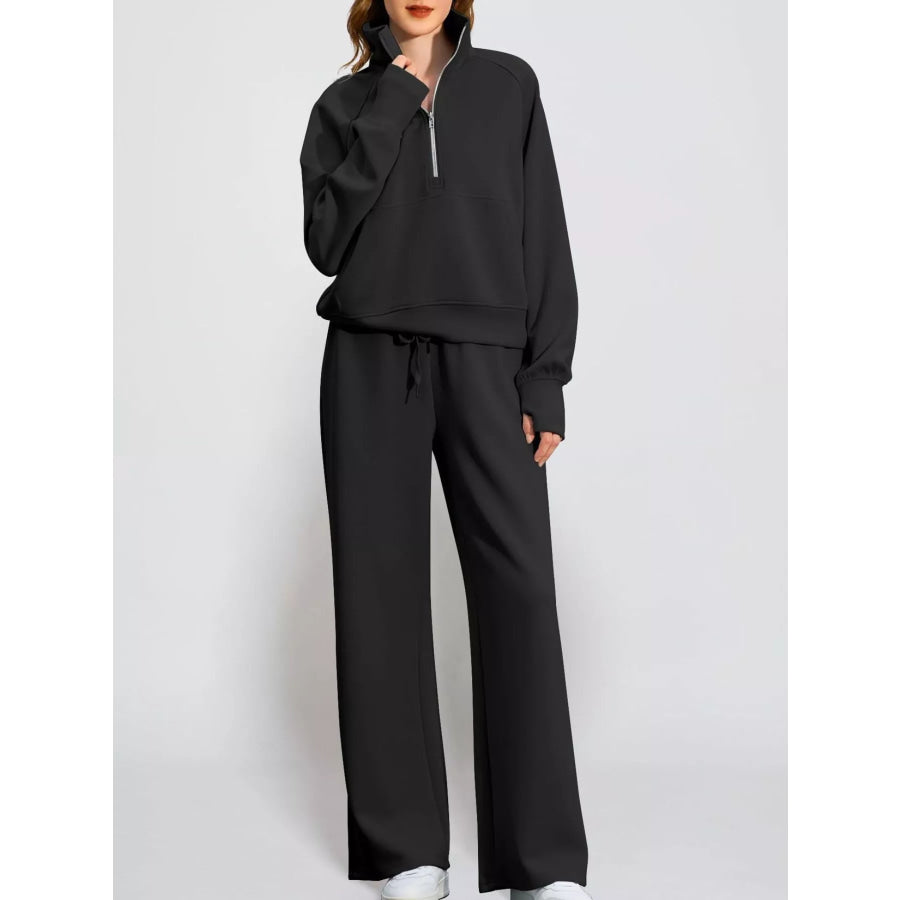 Full Size Half-Zip Sweatshirt and Wide-Leg Pants Set Plus Size
