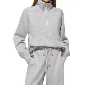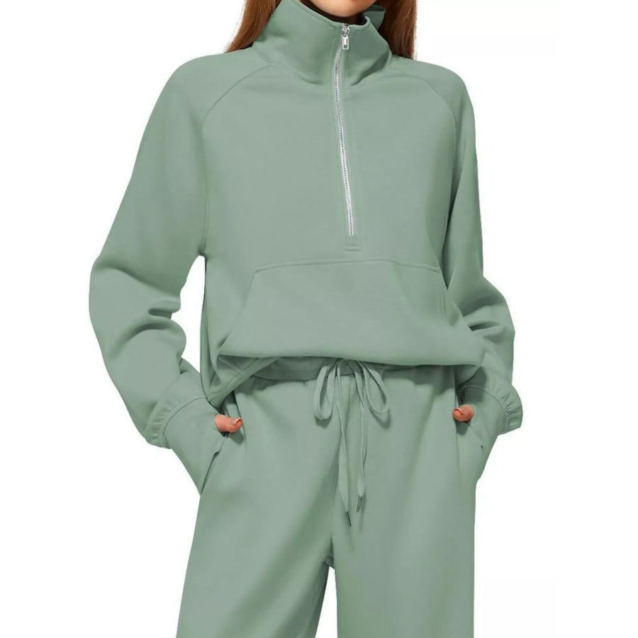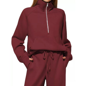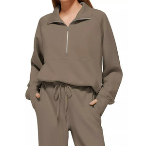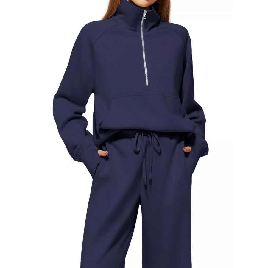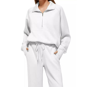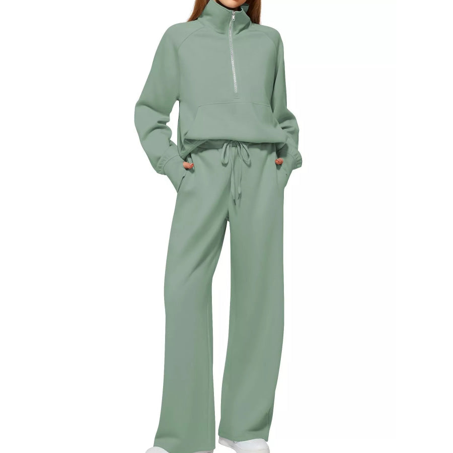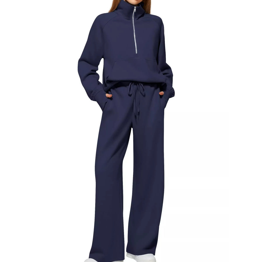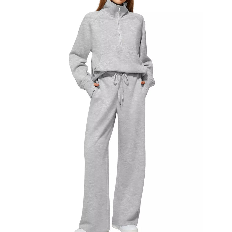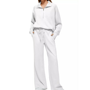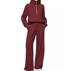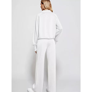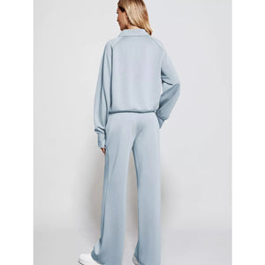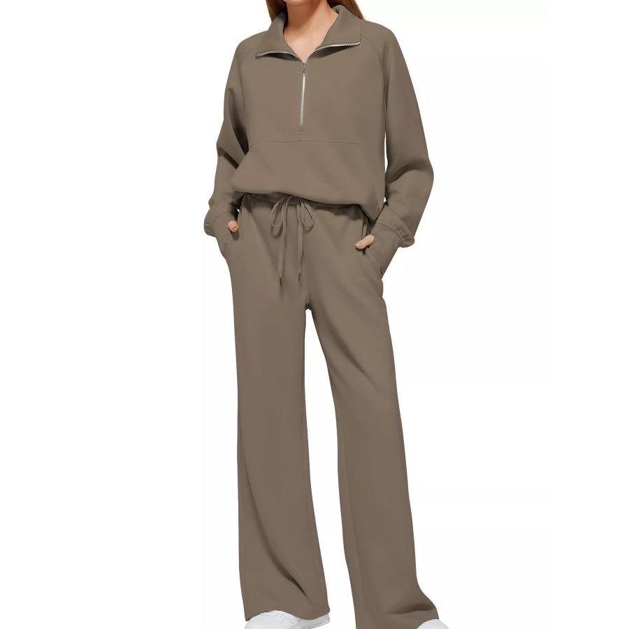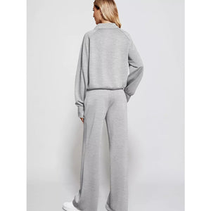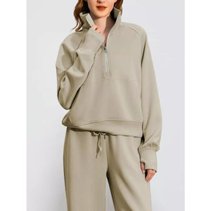 Full Size Half-Zip Sweatshirt and Wide-Leg Pants Set Plus Size