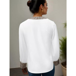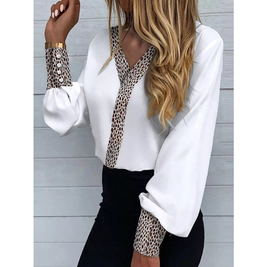 Full Size Leopard Trim Lantern Sleeve Blouse Plus Size