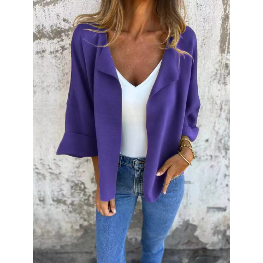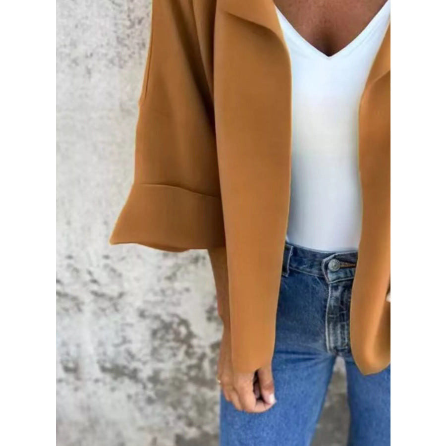 Full Size Open Front 3/4 Sleeve Casual Cardigan Plus Size