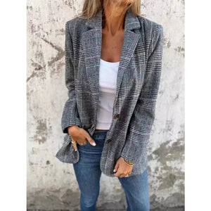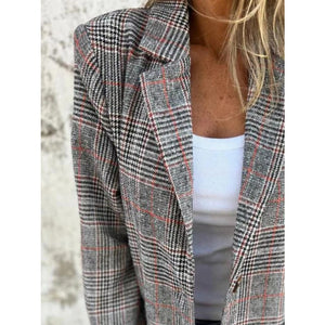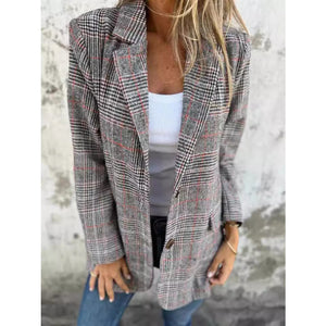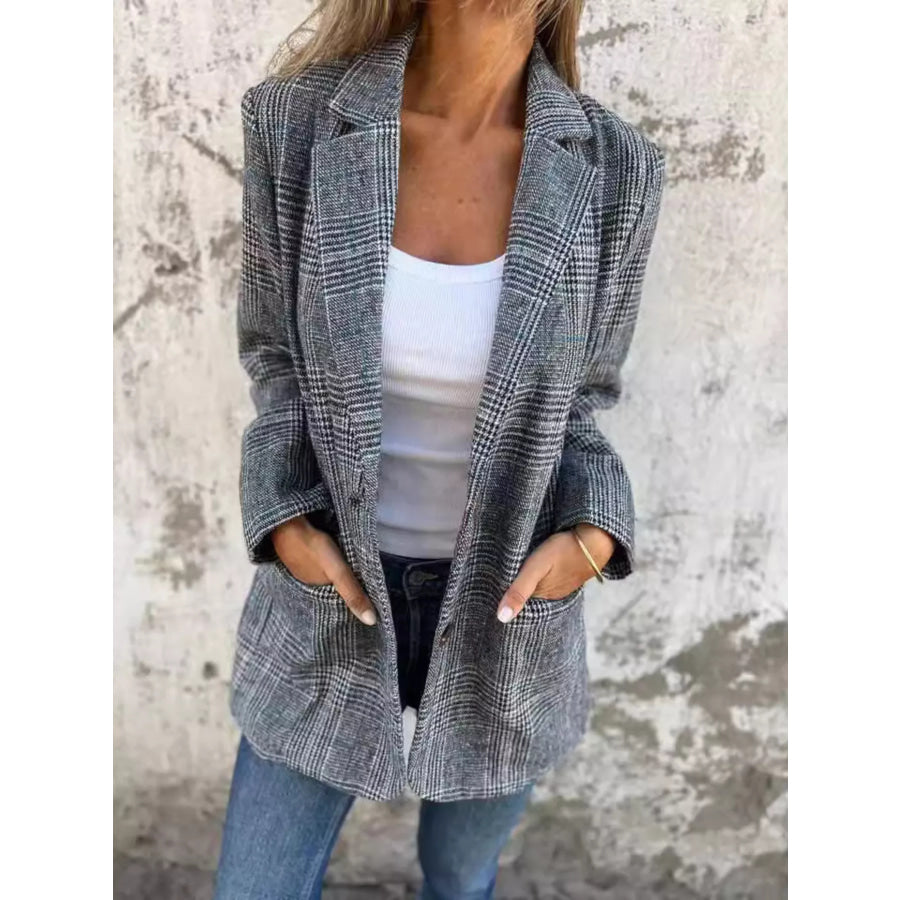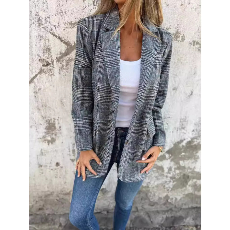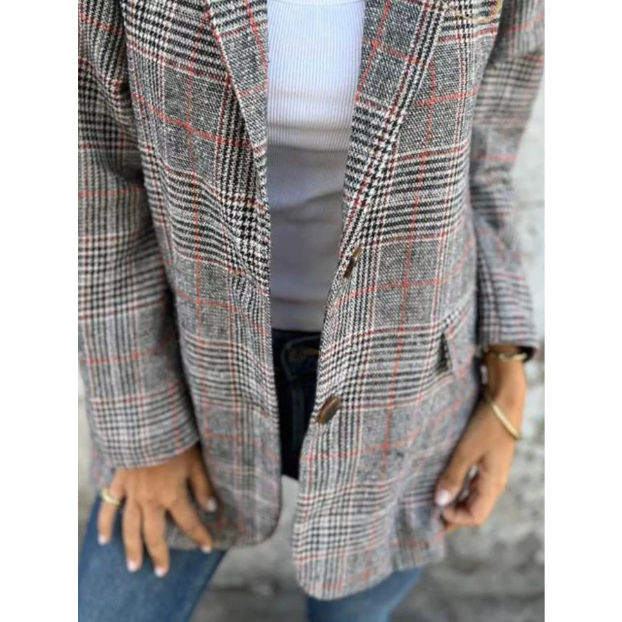 Full Size Plaid Single-Breasted Long Sleeve Blazer Plus Size