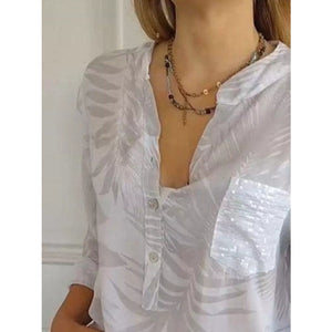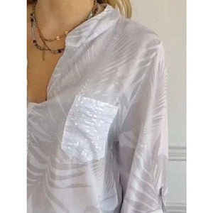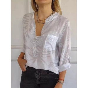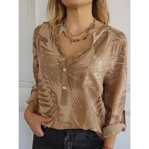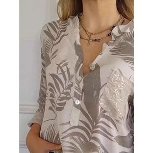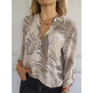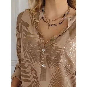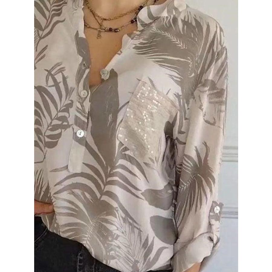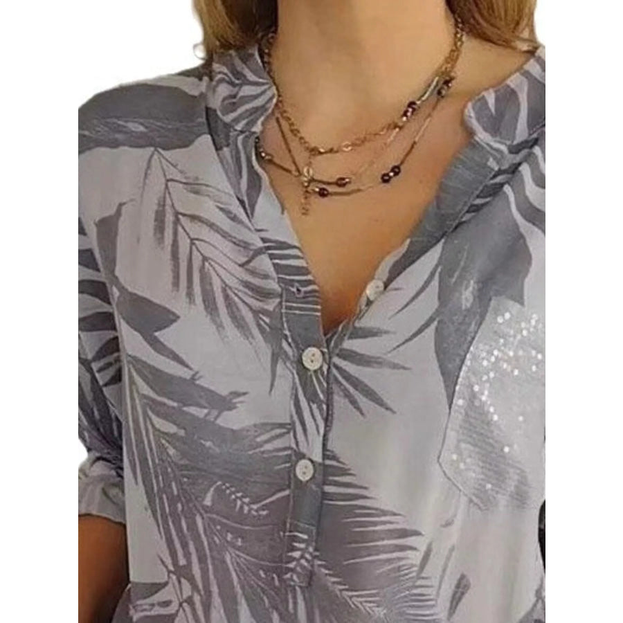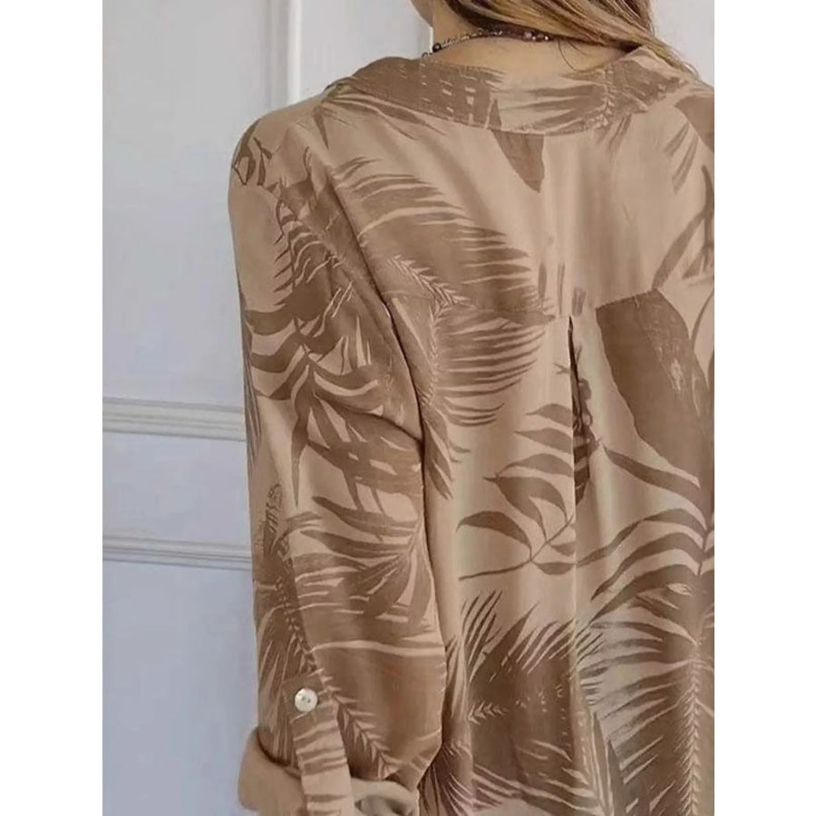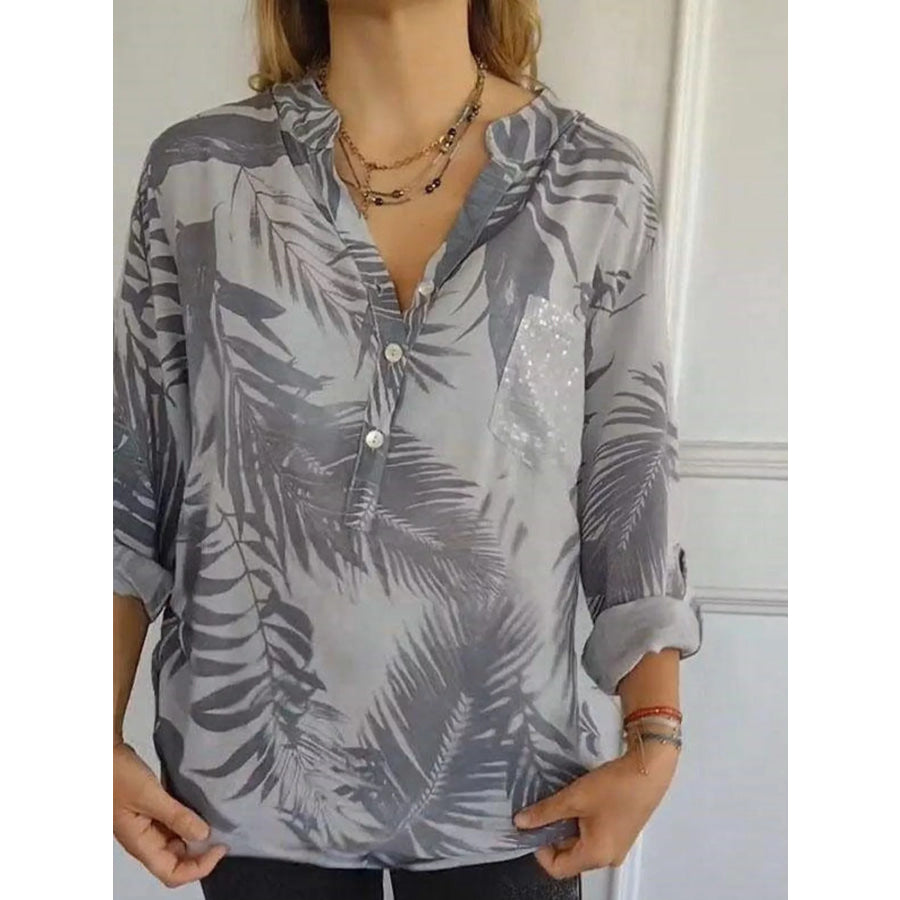 Full Size Printed Button Detail Long Sleeve Blouse Plus Size