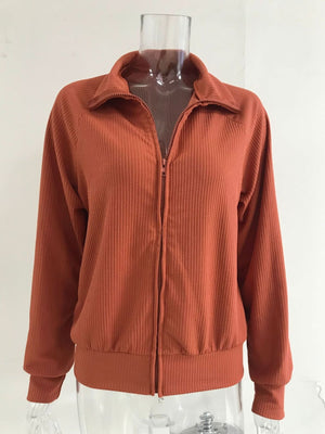 Full Size Ribbed Knit Zip-Up Outerwear Plus Size