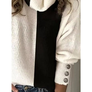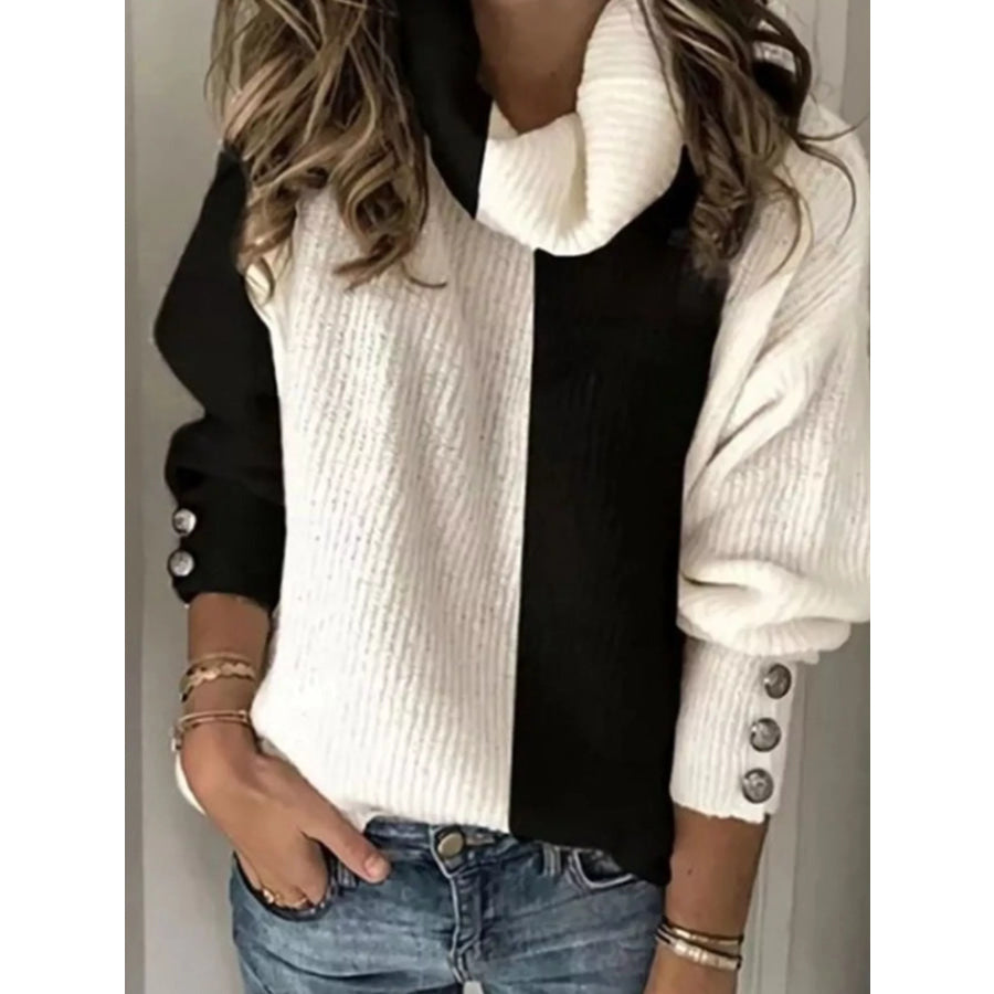 Full Size Two-Tone Turtleneck Long Sleeve Sweater Plus Size