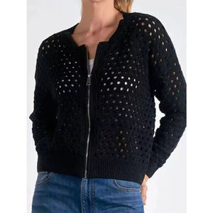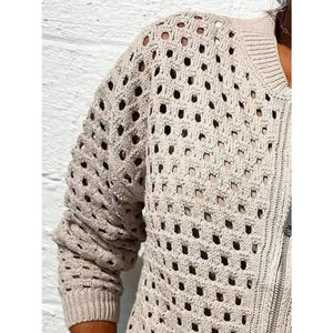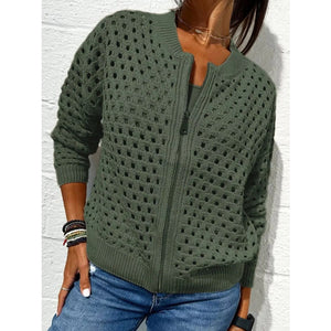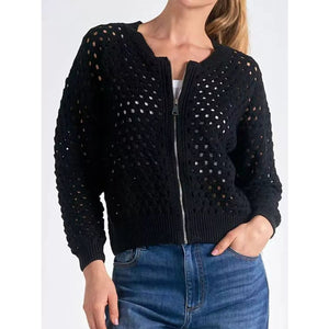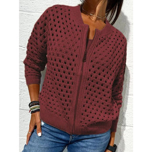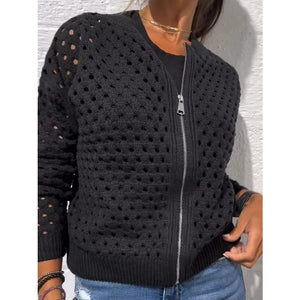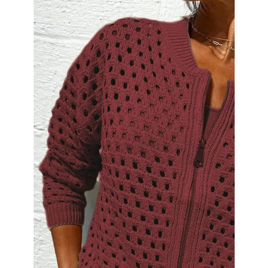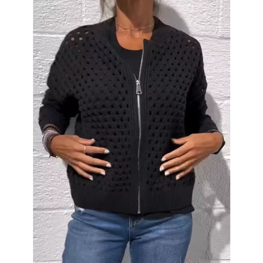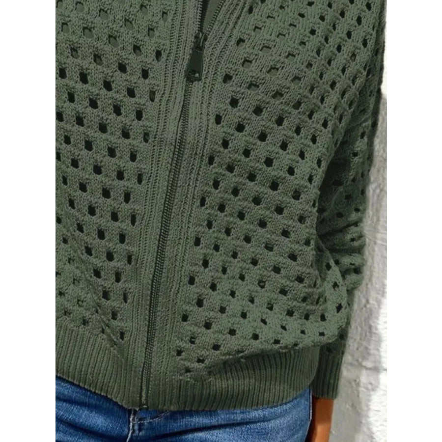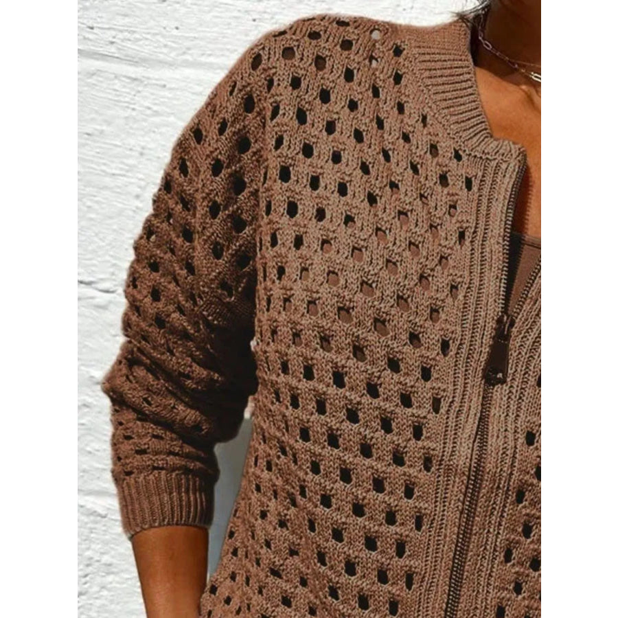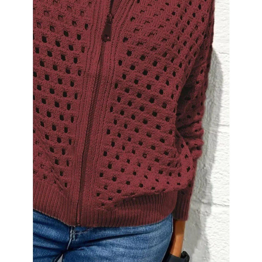 Full Size Zip Up Long Sleeve Cardigan with Eyelet Detail Plus Size