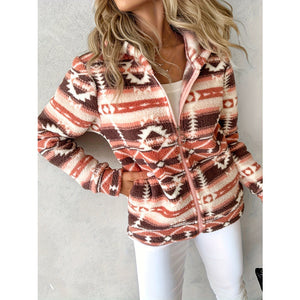 Geometric Zip Up Long Sleeve Hooded Jacket