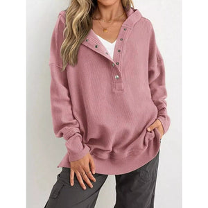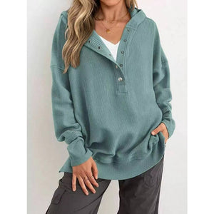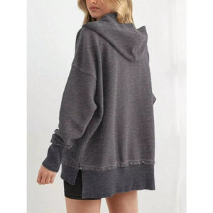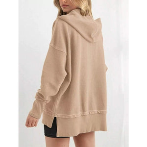 This waffle knit half snap long sleeve hoodie is the perfect blend of comfort and style. Crafted from a soft, breathable fabric, it features a unique waffle knit texture that adds visual interest. The half snap button closure allows for adjustable coverage, while the long sleeves and hooded design provide extra warmth. Its relaxed fit makes it ideal for casual wear, and it's versatile enough to be layered with other pieces. A must-have addition to any wardrobe, this hoodie offers both fashion and functionality.