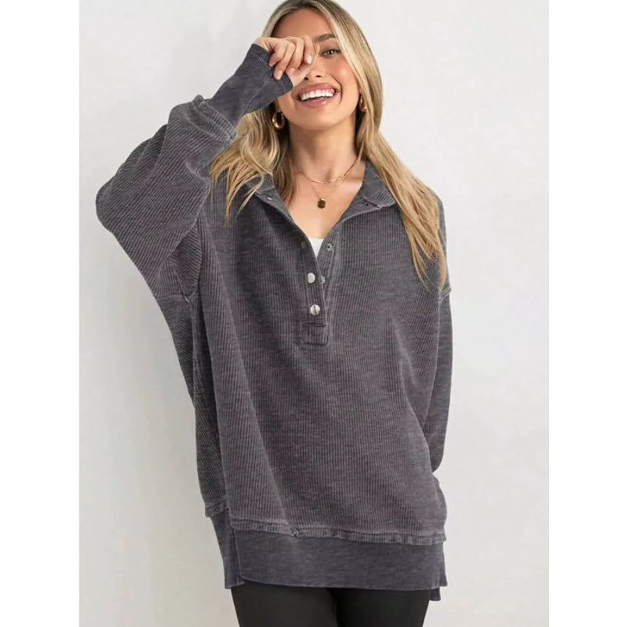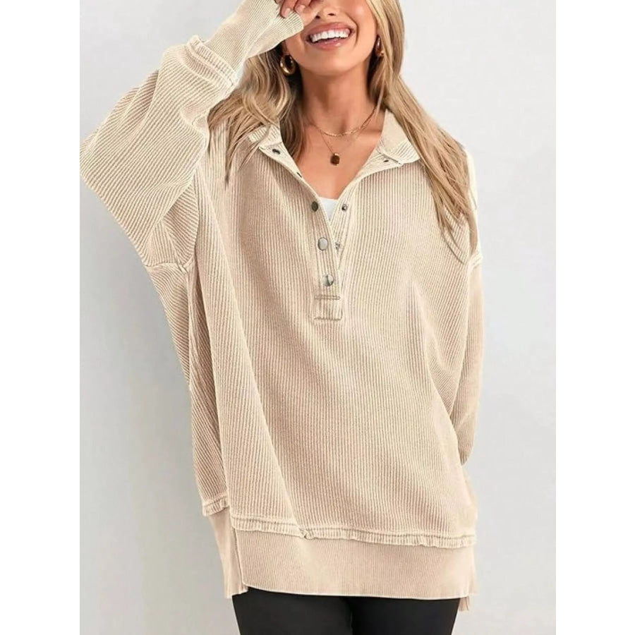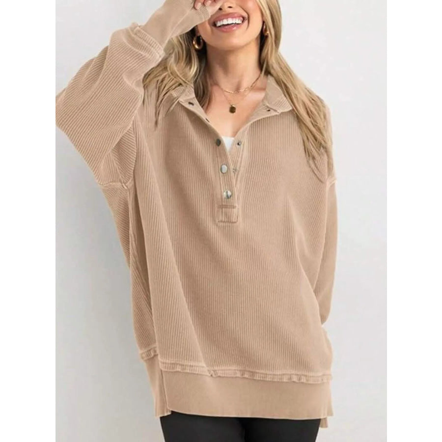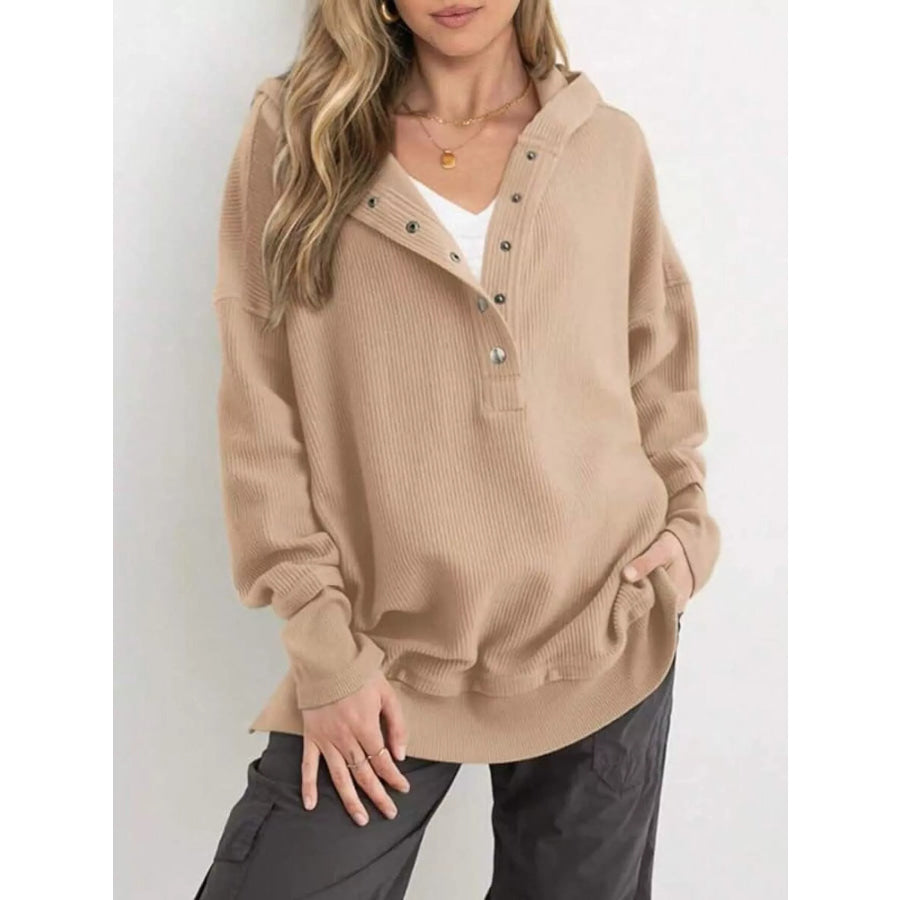 This waffle knit half snap long sleeve hoodie is the perfect blend of comfort and style. Crafted from a soft, breathable fabric, it features a unique waffle knit texture that adds visual interest. The half snap button closure allows for adjustable coverage, while the long sleeves and hooded design provide extra warmth. Its relaxed fit makes it ideal for casual wear, and it's versatile enough to be layered with other pieces. A must-have addition to any wardrobe, this hoodie offers both fashion and functionality.