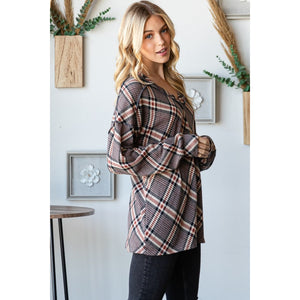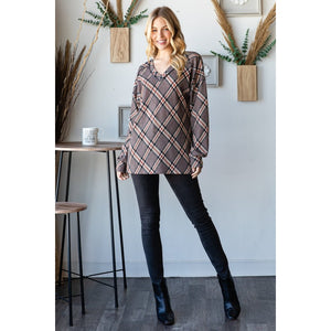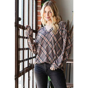 Heimish Plaid Exposed Seam V-Neck T-Shirt