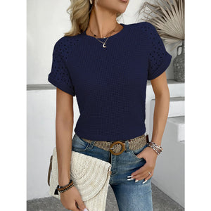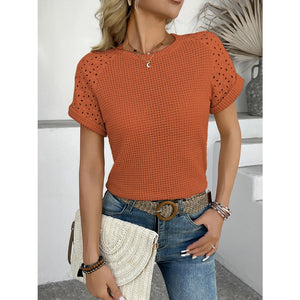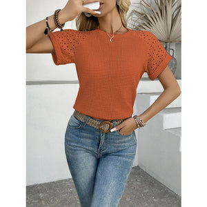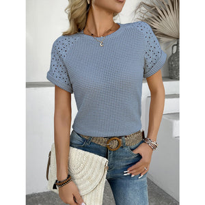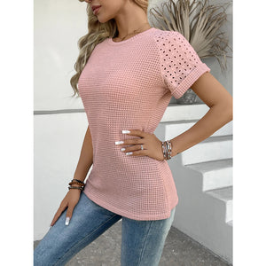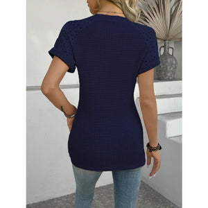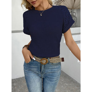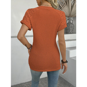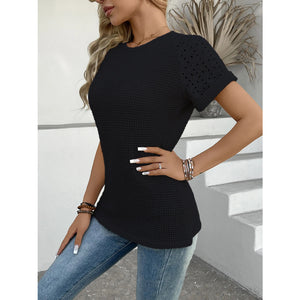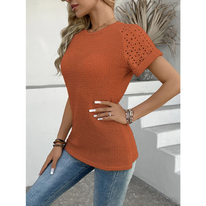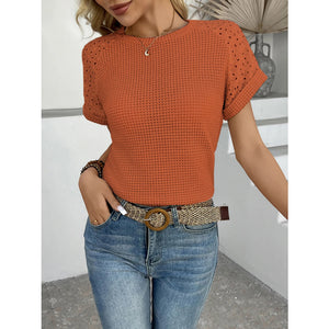 Hollow Out Waffle Knit Short Sleeve T-Shirt