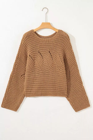 Hollowed Detail Wide Sleeve Loose Pullover Sweater