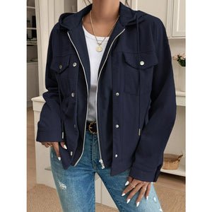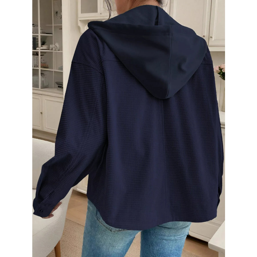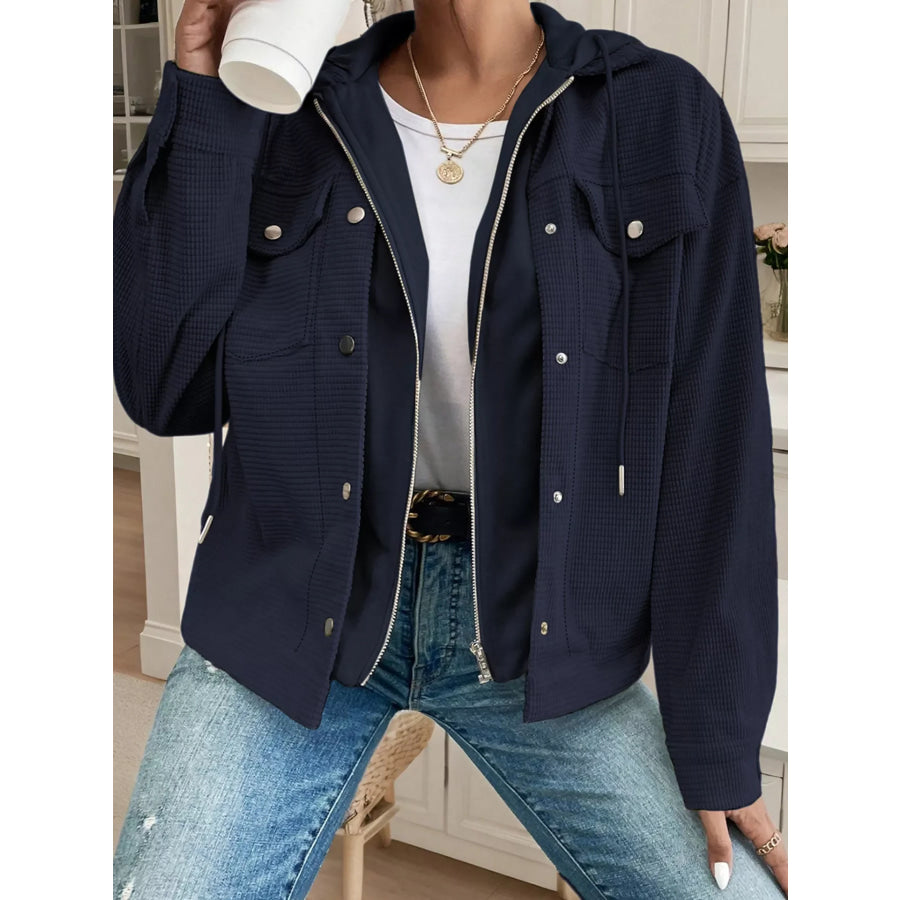 Hooded Waffle Knit Zip-Up Jacket