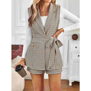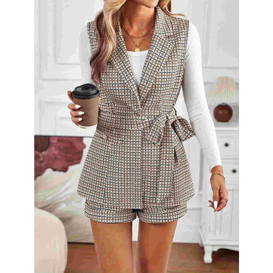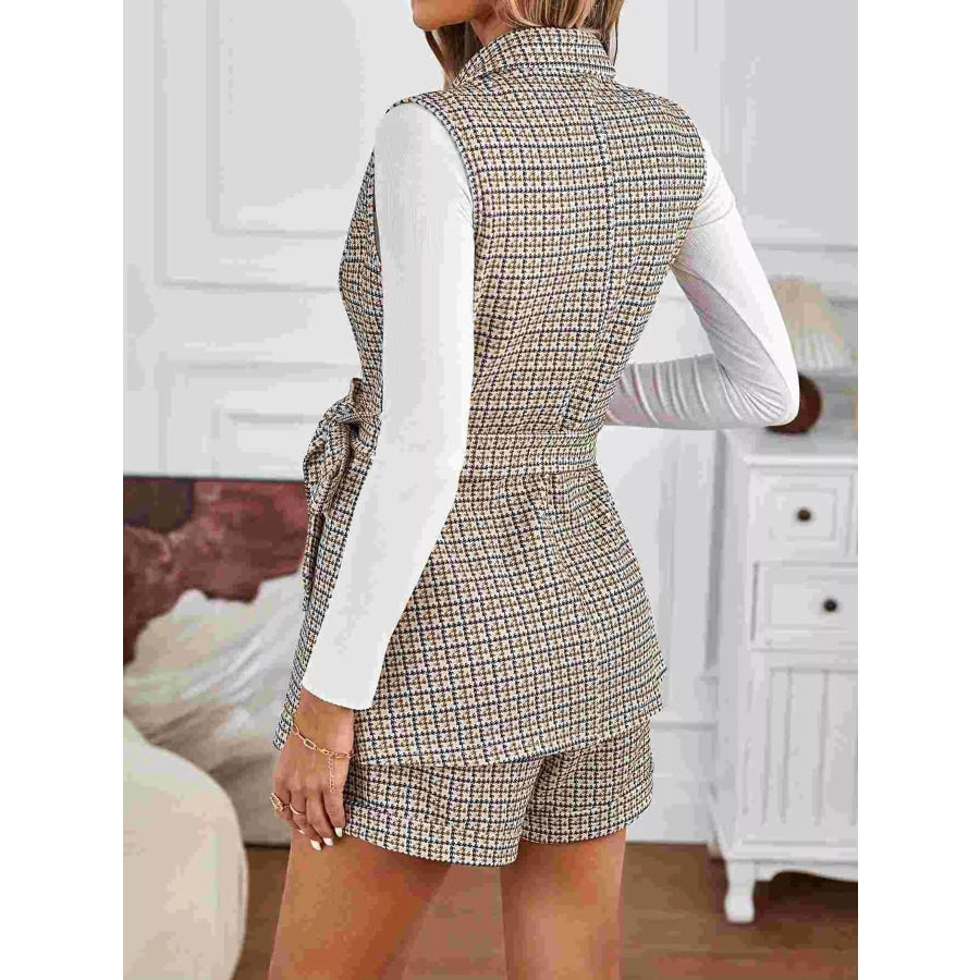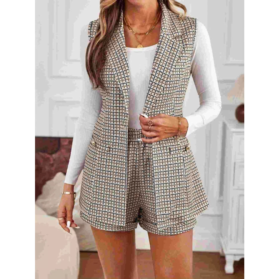 Houndstooth Lapel Collar Vest Coat and Shorts Set