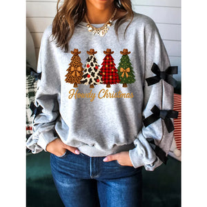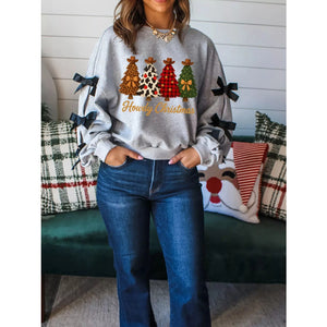 Howdy Christmas 4 Trees Ribbon Bow Decor Sweatshirt
