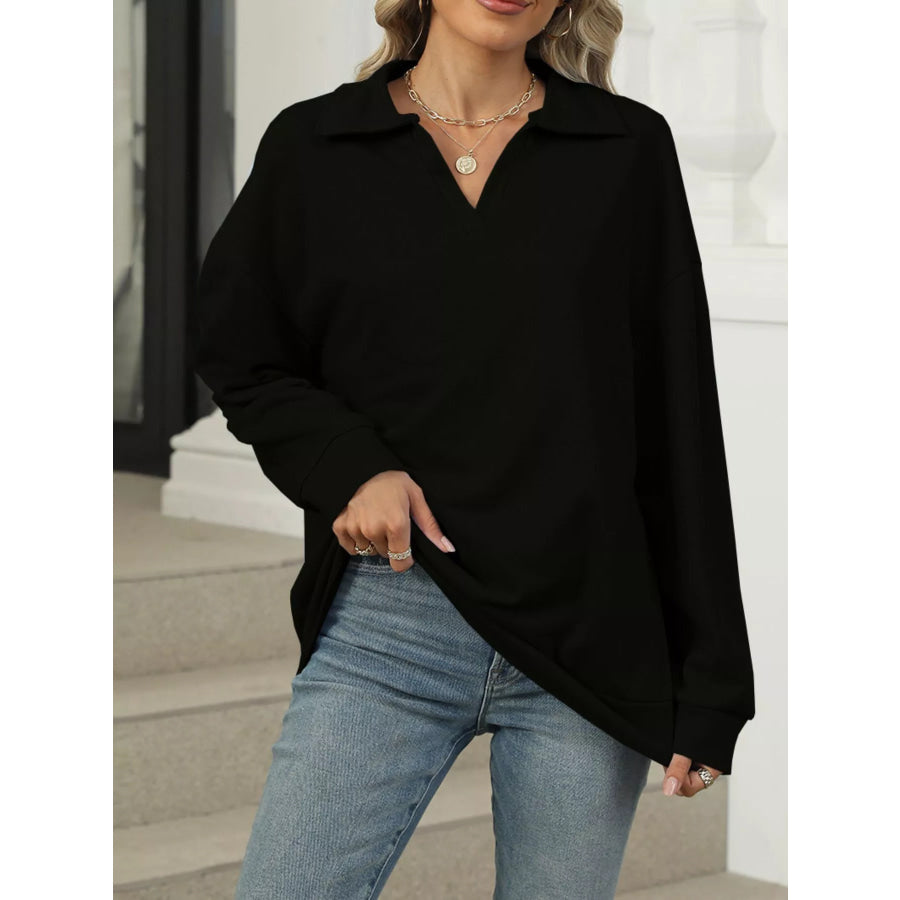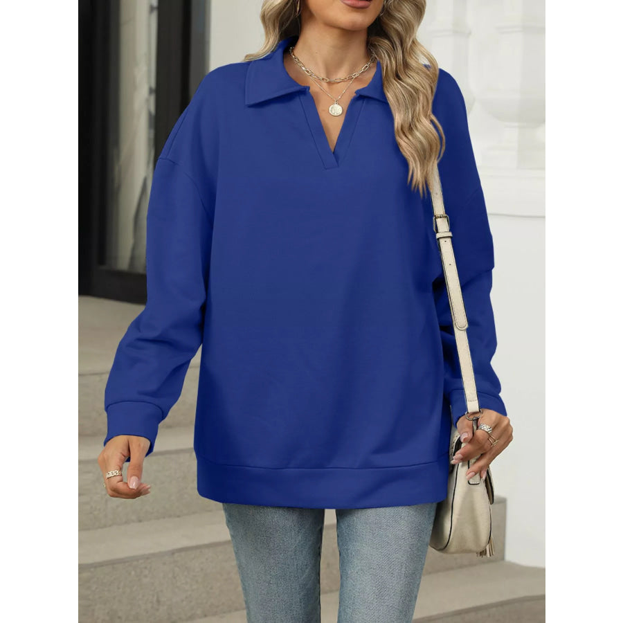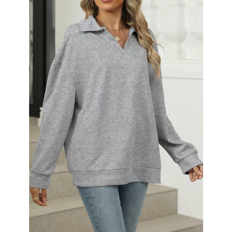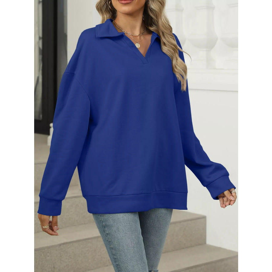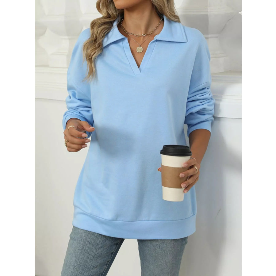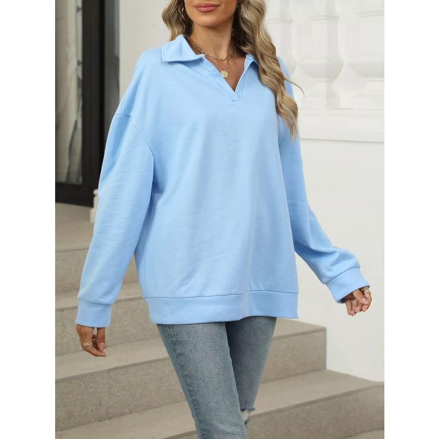 Johnny Collar Drop Shoulder Long Sleeve Sweatshirt