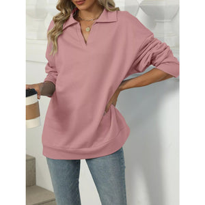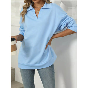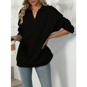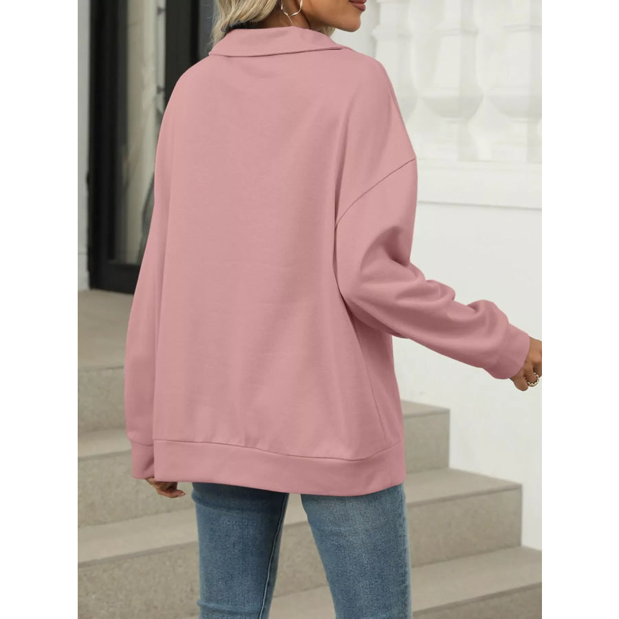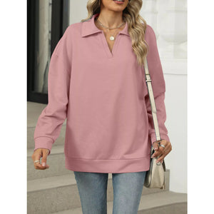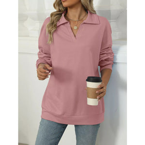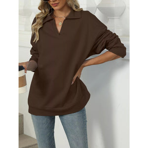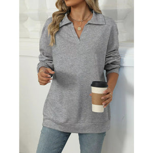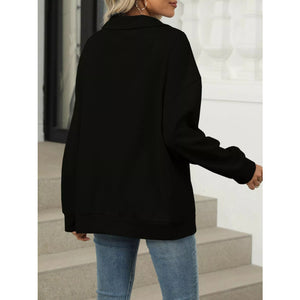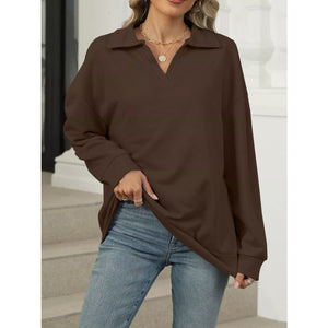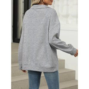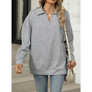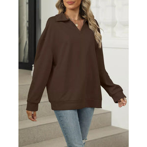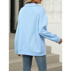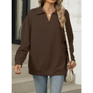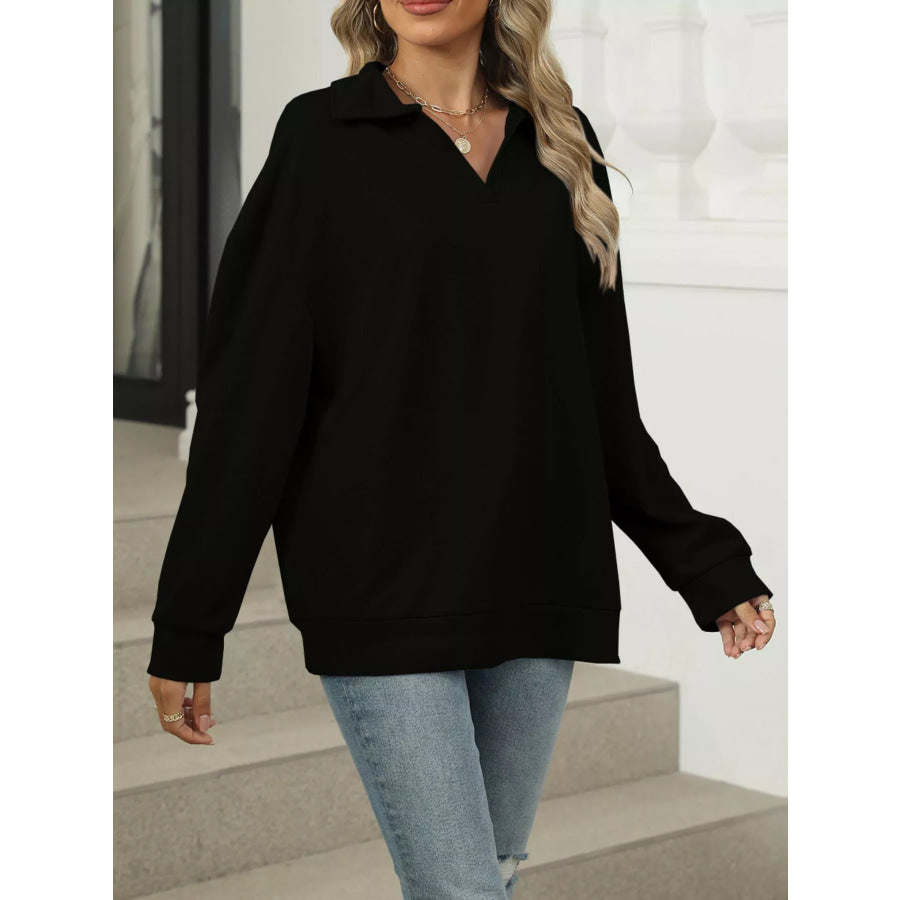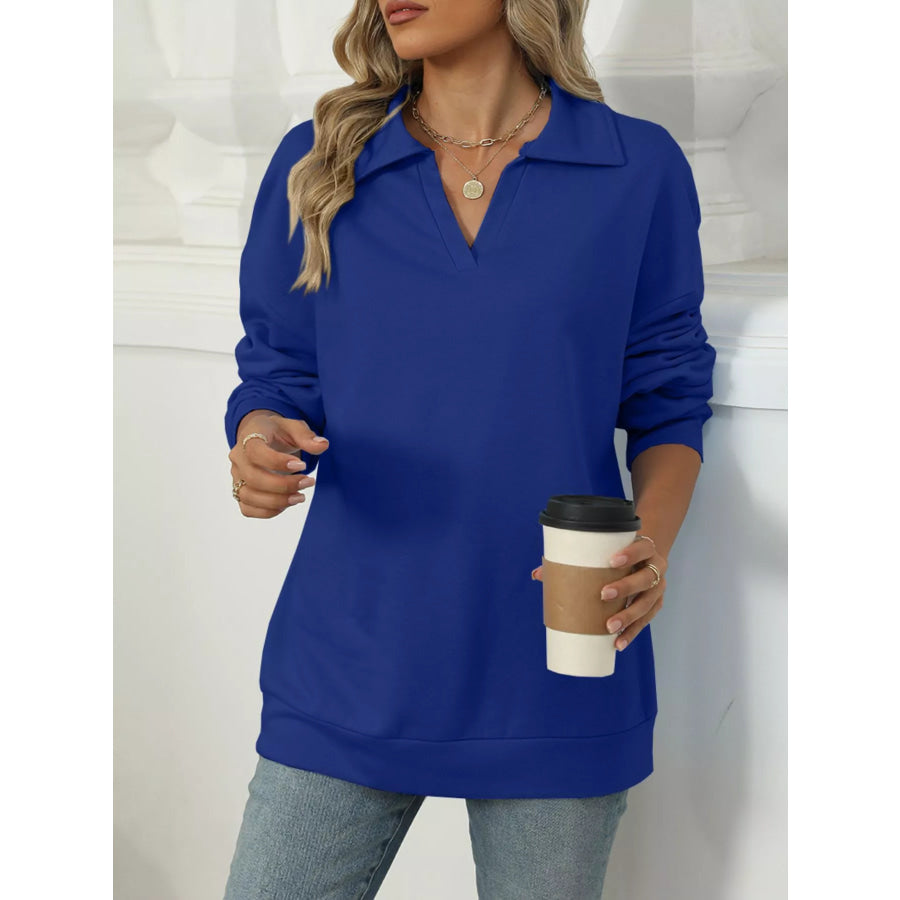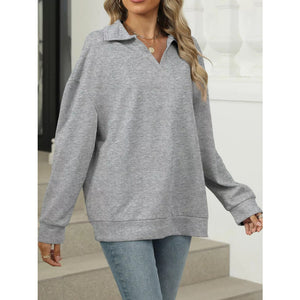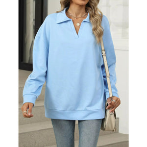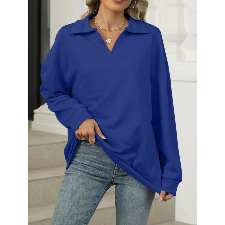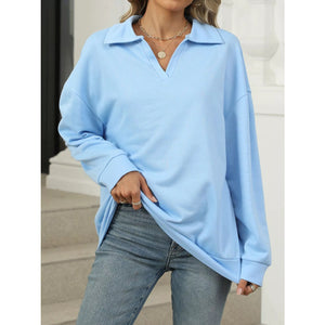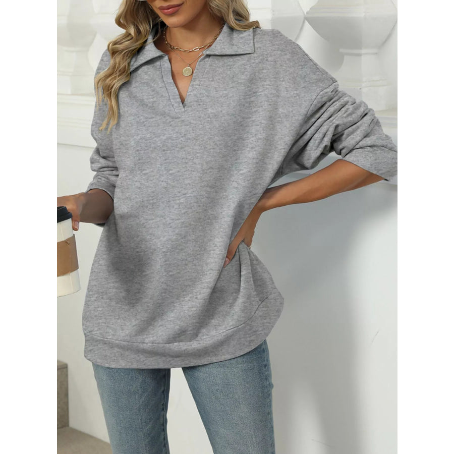 Johnny Collar Drop Shoulder Long Sleeve Sweatshirt