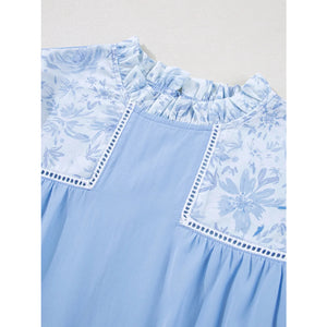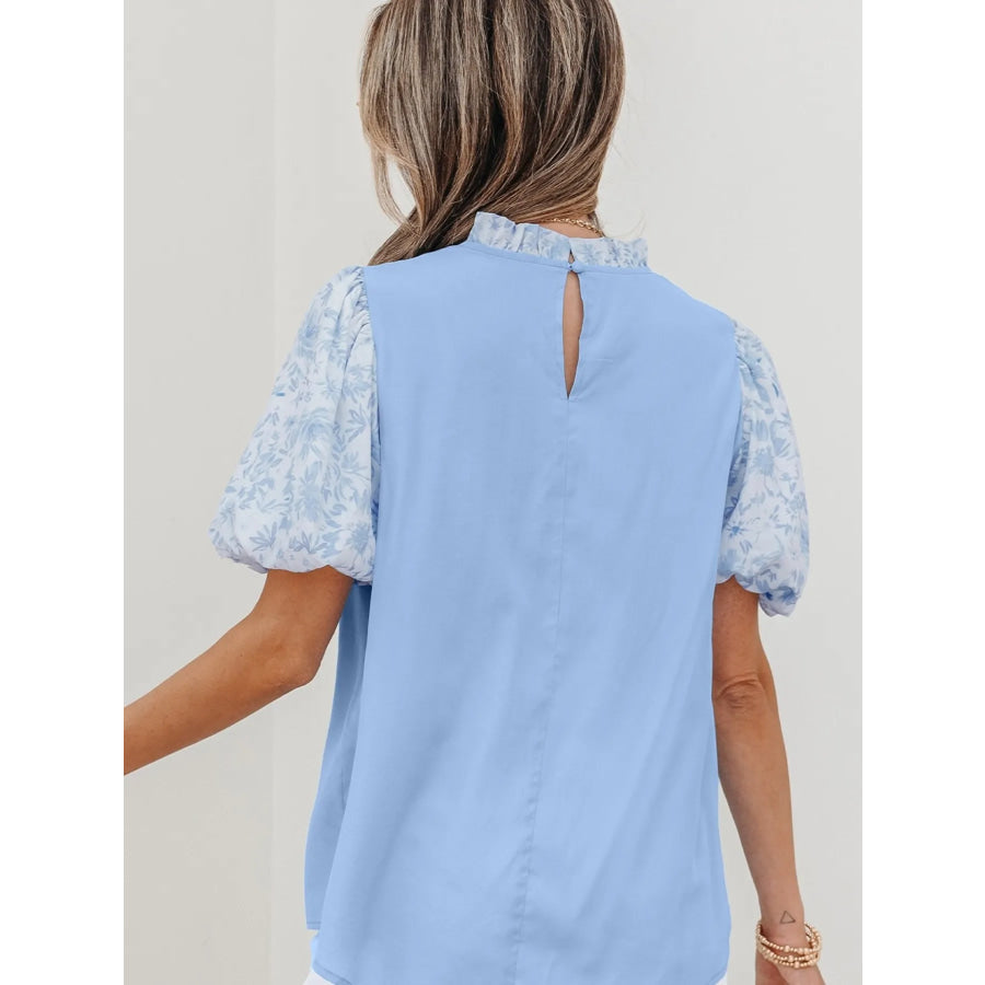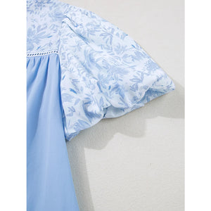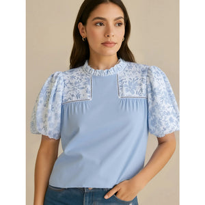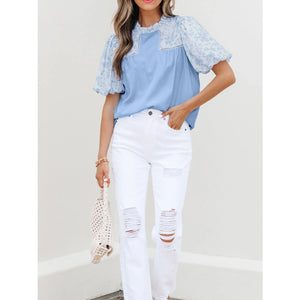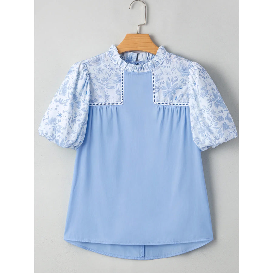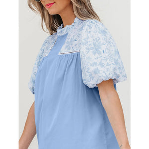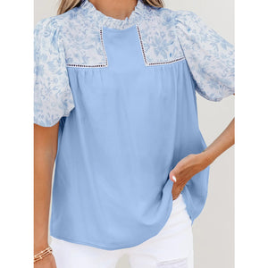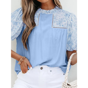 Lace Insert Floral Puff Sleeve Patchwork Loose Blouse