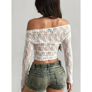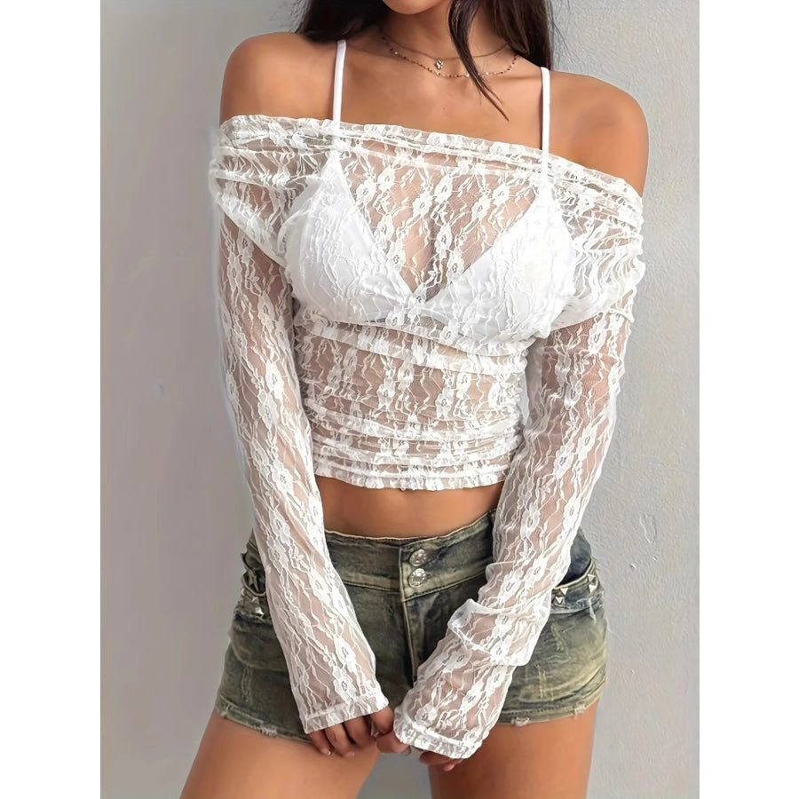 Lace Off-Shoulder Long Sleeve Top