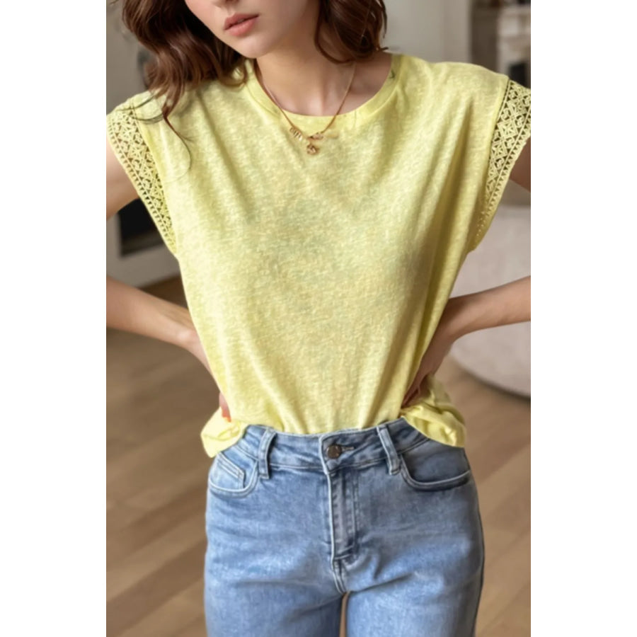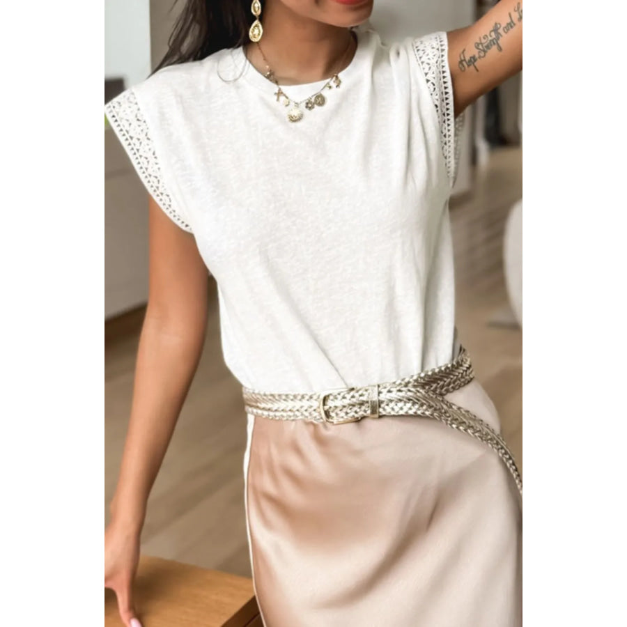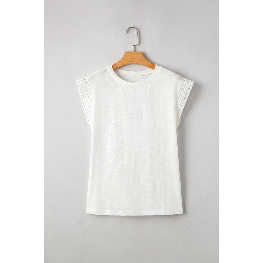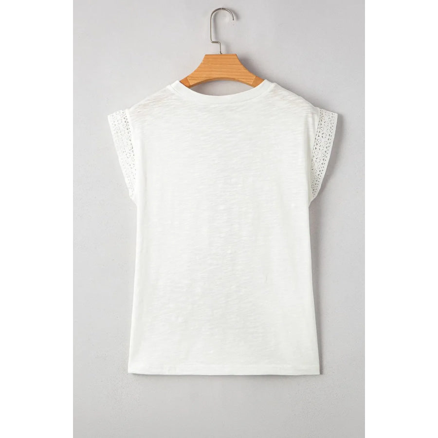 Lace Patchwork Cap Sleeve Round Neck T Shirt