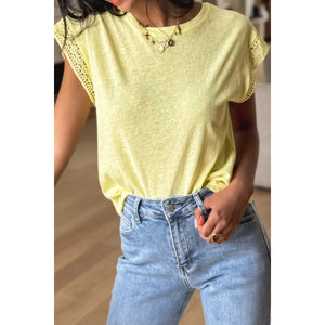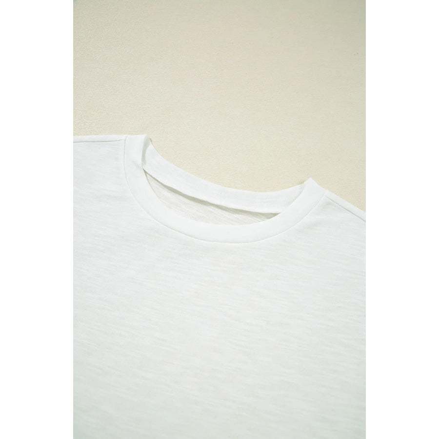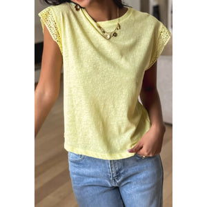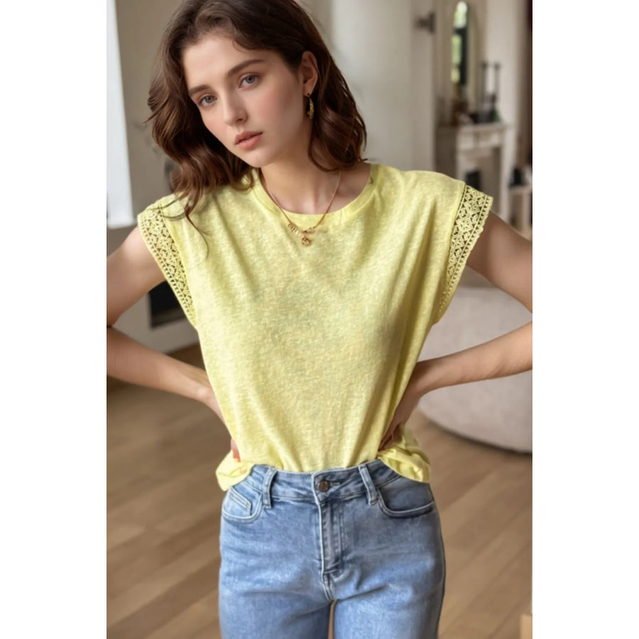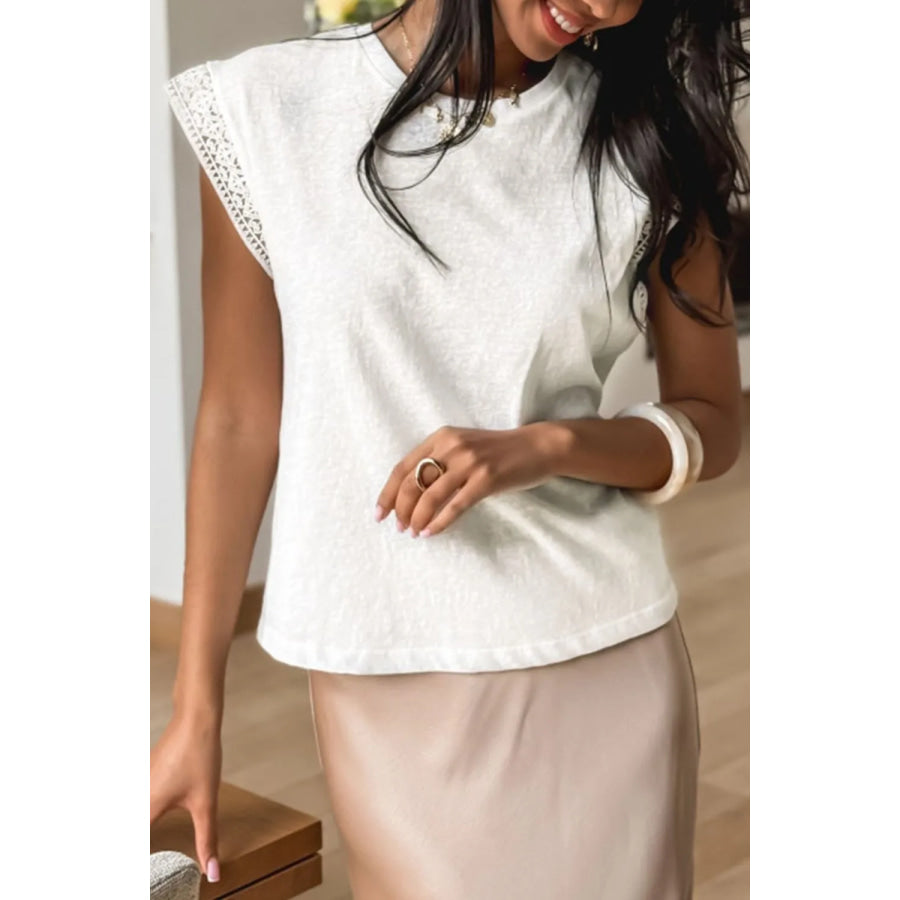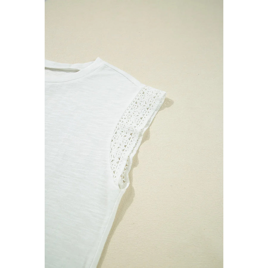 Lace Patchwork Cap Sleeve Round Neck T Shirt
