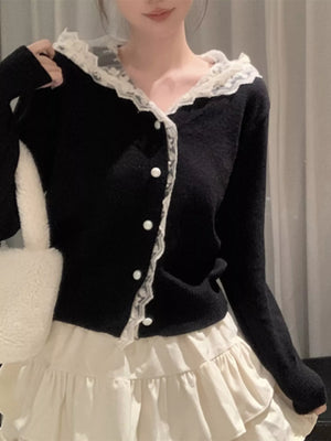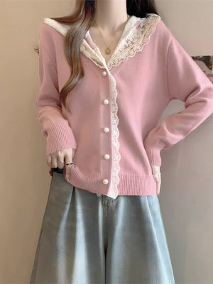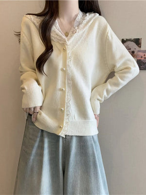 Lace Trim Hooded Cardigan