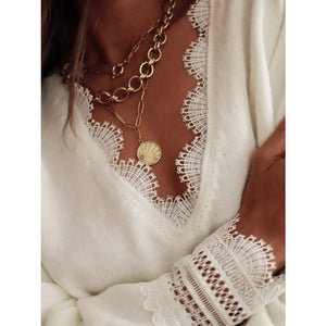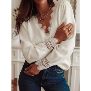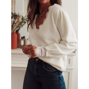 Lace Trim V-Neck Sweater