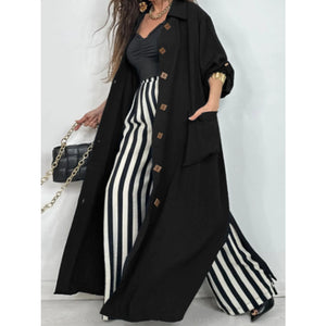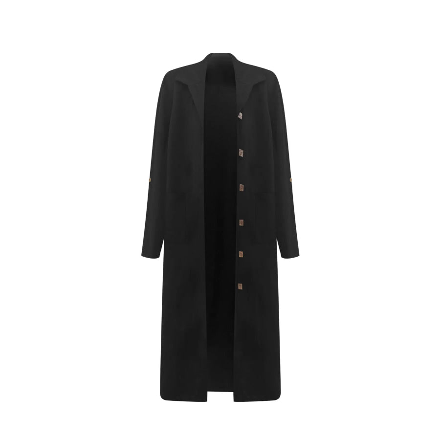 Lapel Collar Button-Front Longline Coat