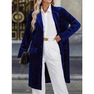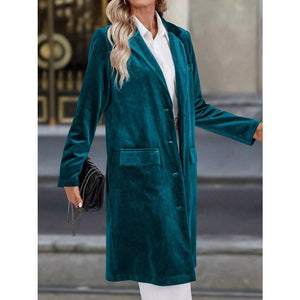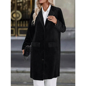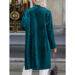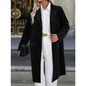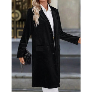 Lapel Collar Long Sleeve Longline Coat