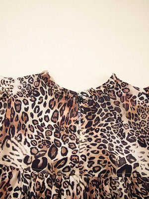 Leopard Ruffled Detail Long Sleeve Loose Mini Dress