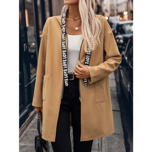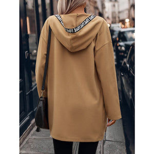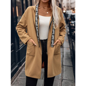 Letter Print Strap Zip Up Hooded Trench Coat