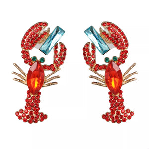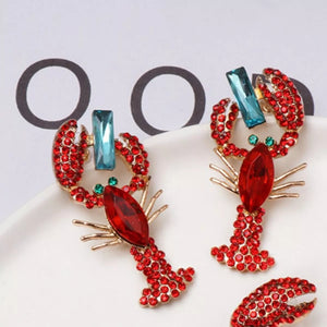 Lobster Earrings with Sparkling Rhinestones
