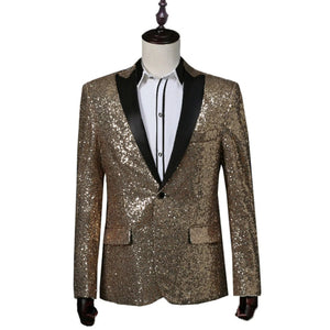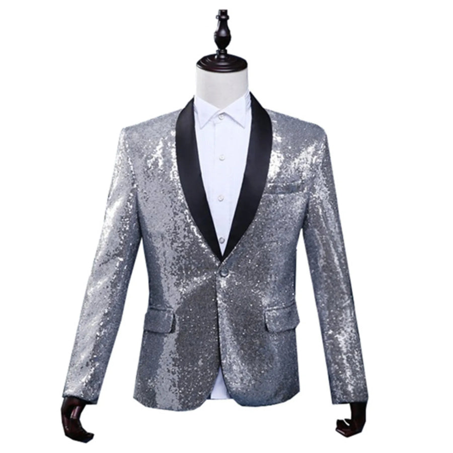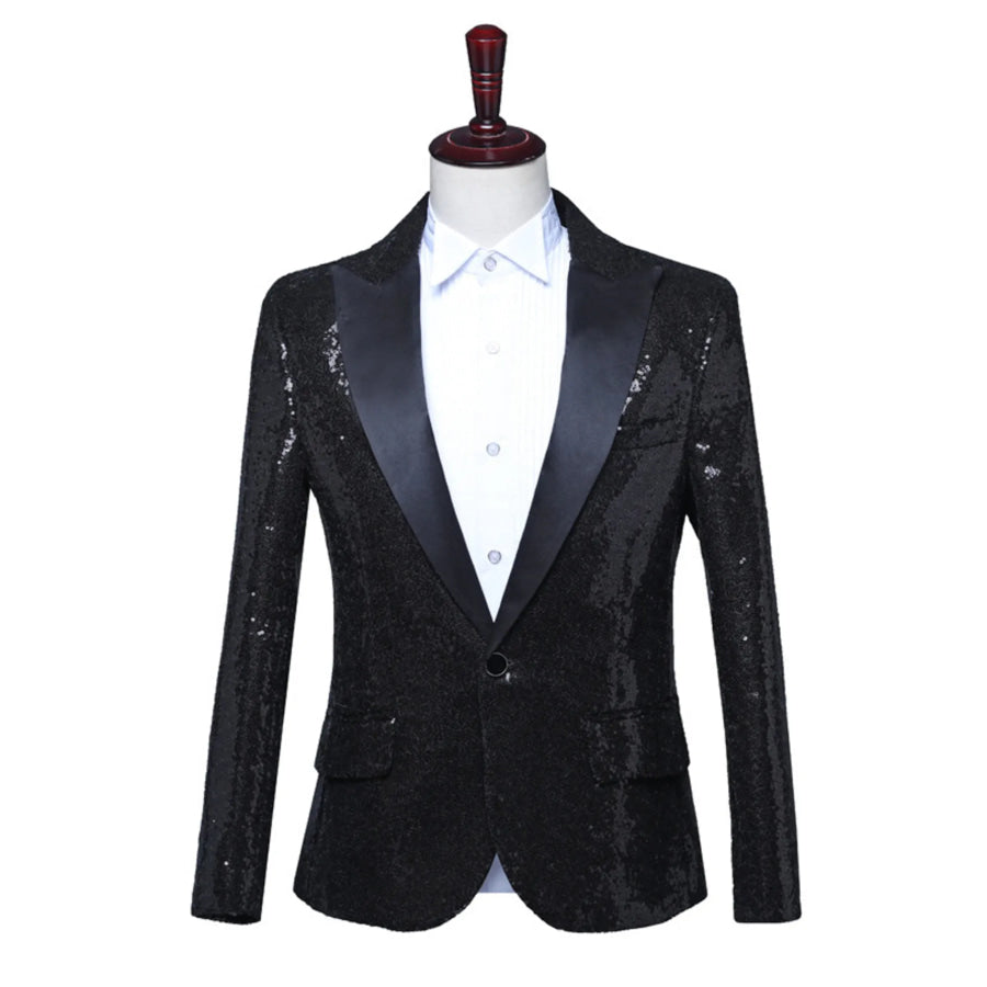 Men's Full Size Sequin One Button Long Sleeve Blazer Plus Size
