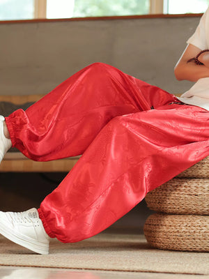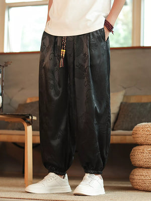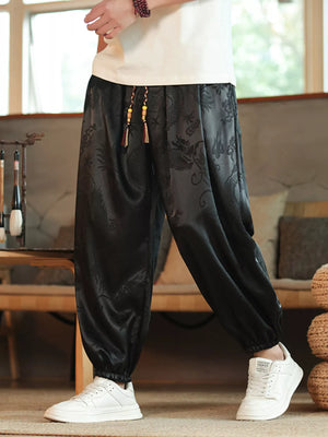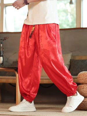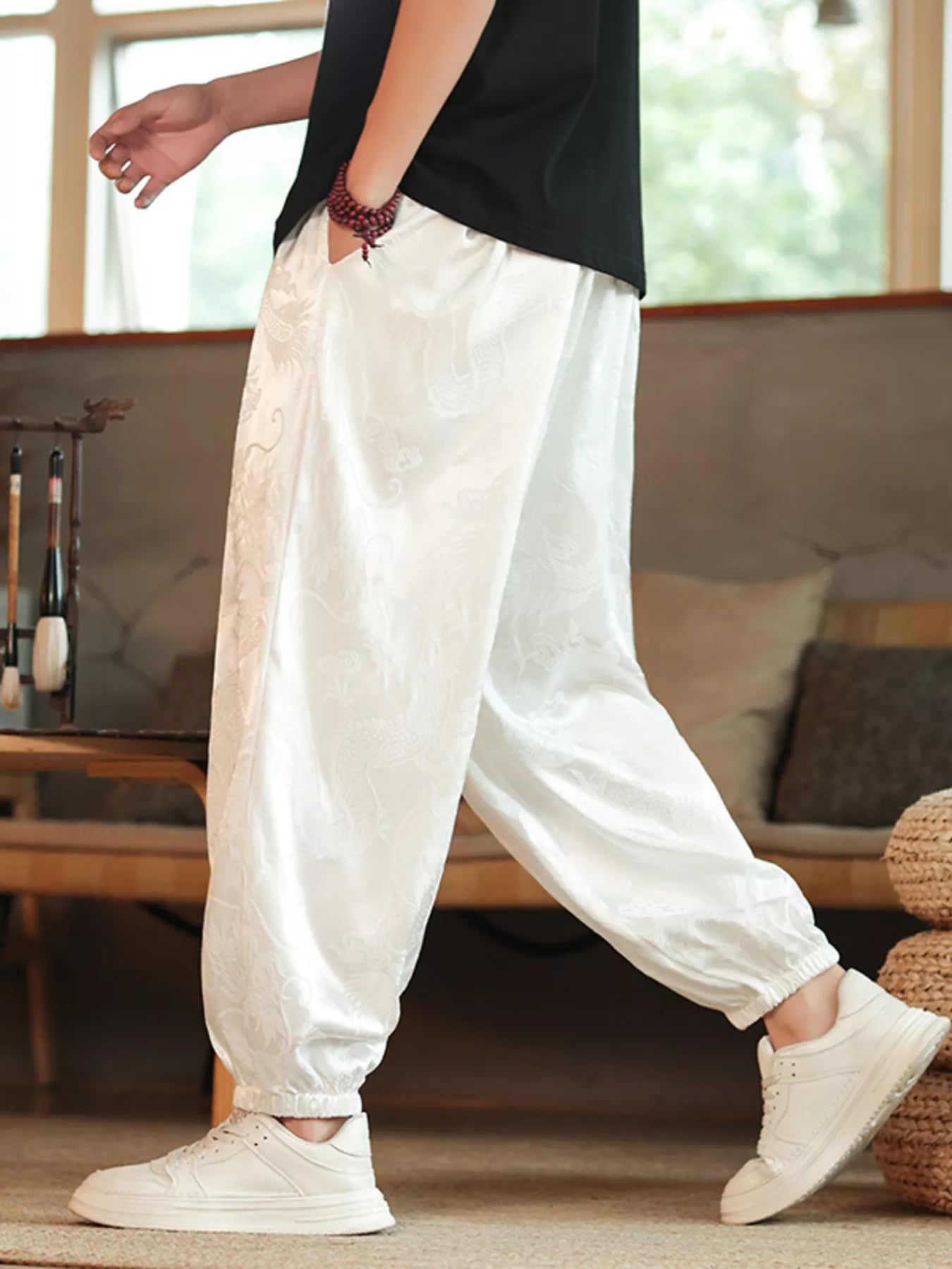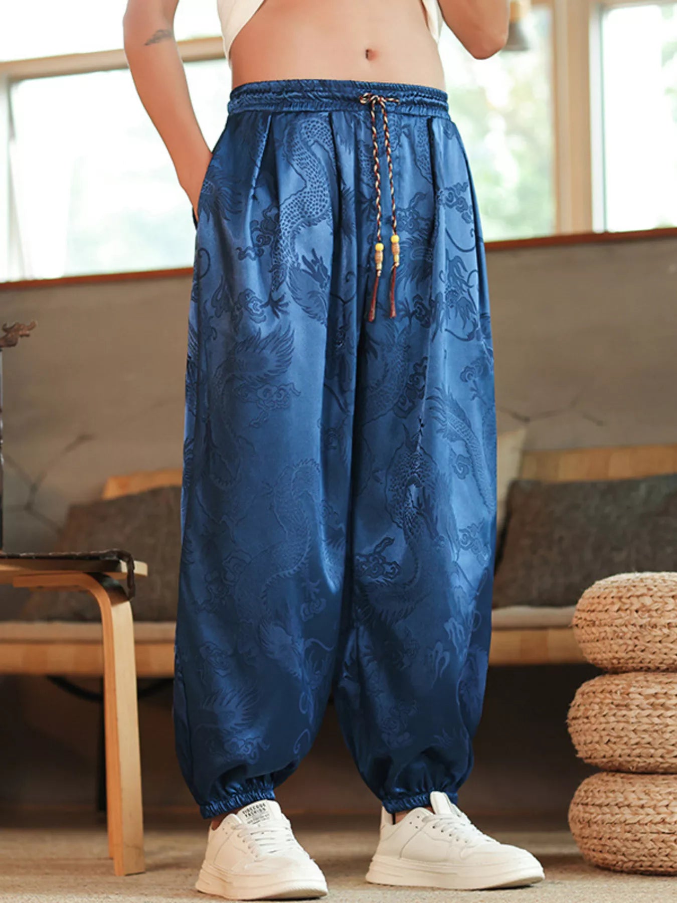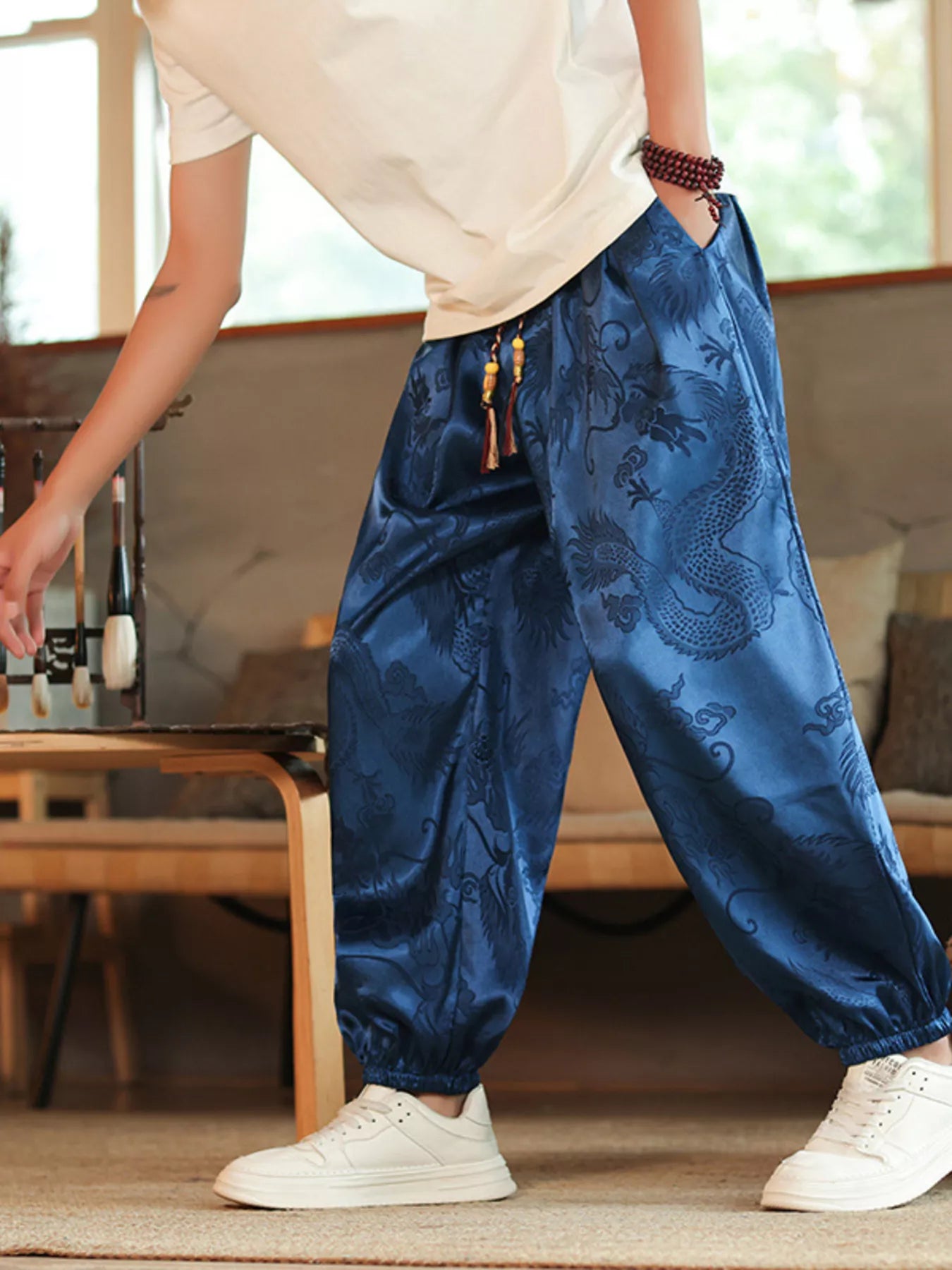 Men's Plus Size Dragon Pattern Silk Harem Pants