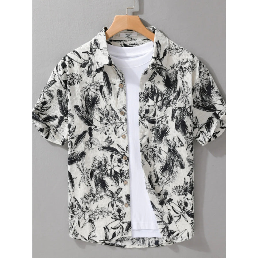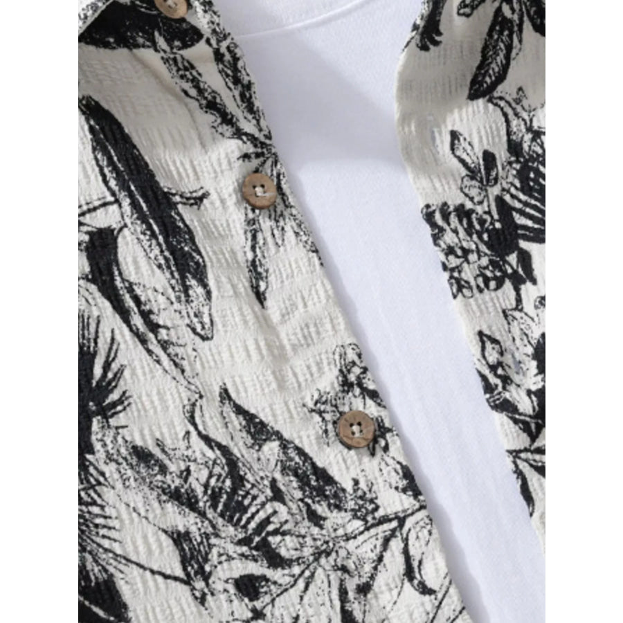 Men's Plus Size Printed Button Up Short Sleeve Shirt