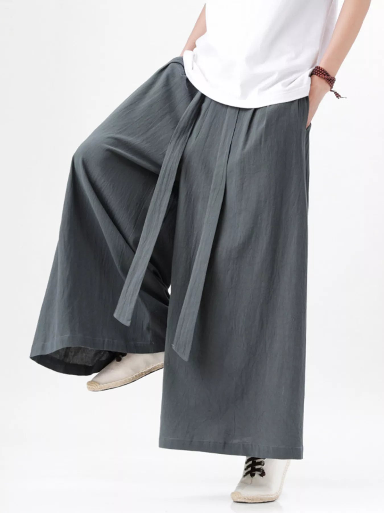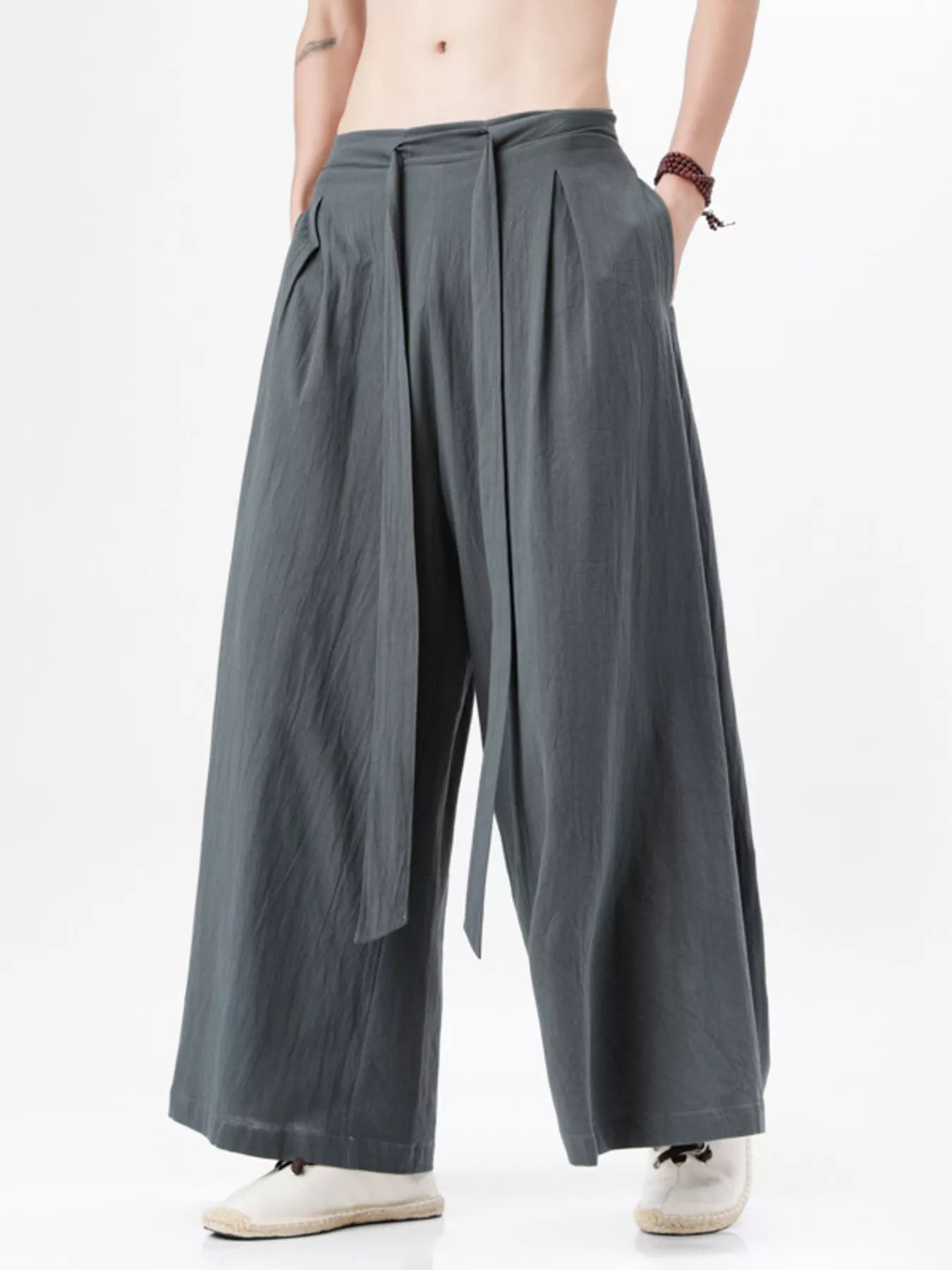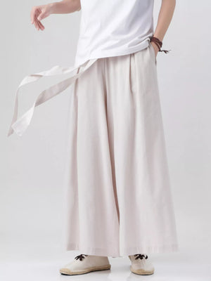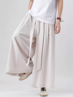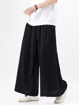 Men's Plus Size Wide Leg Pants with Tie Waist