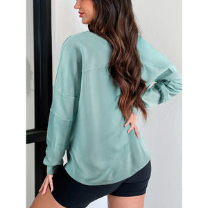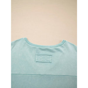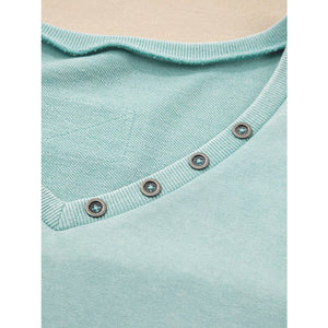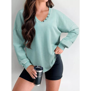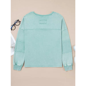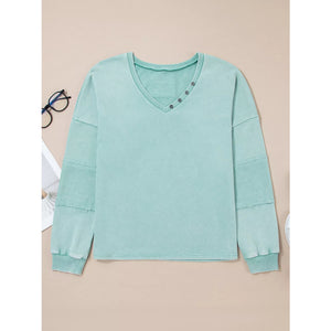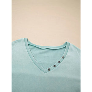 Mineral Wash Exposed Seam Buttoned V Neck Top